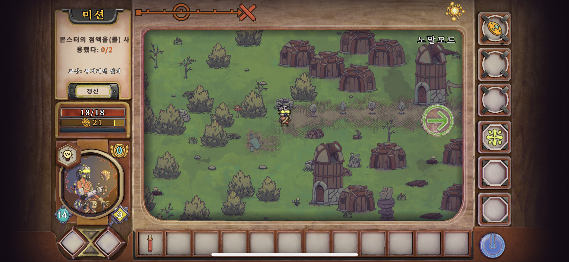 여행의 묘미는 보물찾기! 강력한 능력을 갖춘 보물을 길에서 많이 발견할 것입니다. 전설의 장비, 체력을 회복하는 주문, 식량, 함정, 위장용 향수, 동전 등 다양한 보물들이 기다리고 있습니다.