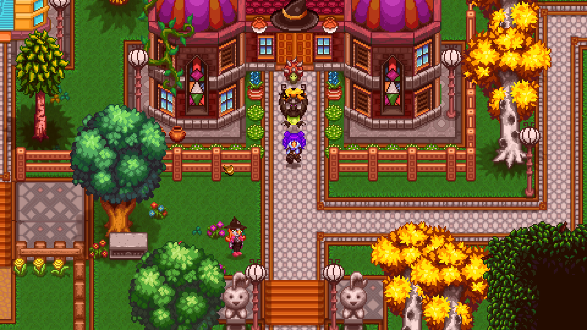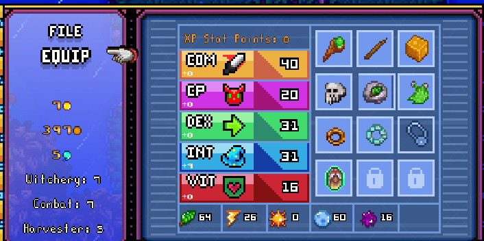 It’s dangerous to go alone… Take your battle-worthy familiar, some unique friends, and wits for adventure! Or spend your days around town running errands for the Witches Guild, fishing, tending your familiars, and shaping up a potion garden.