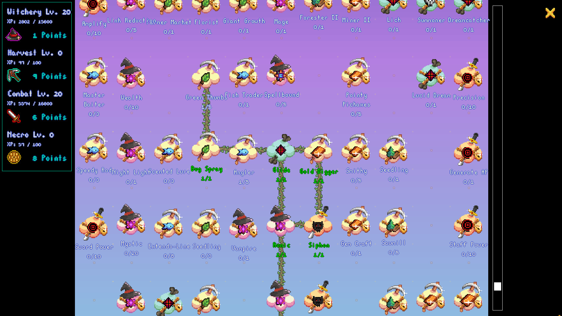 Find side tasks and Witchery errands.