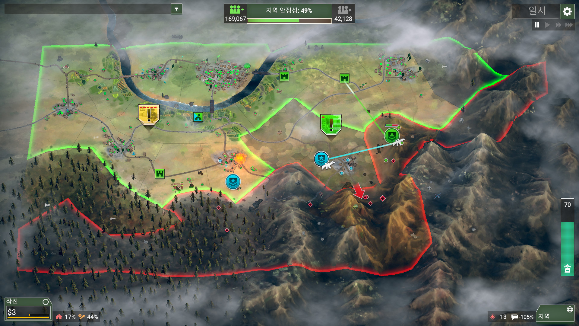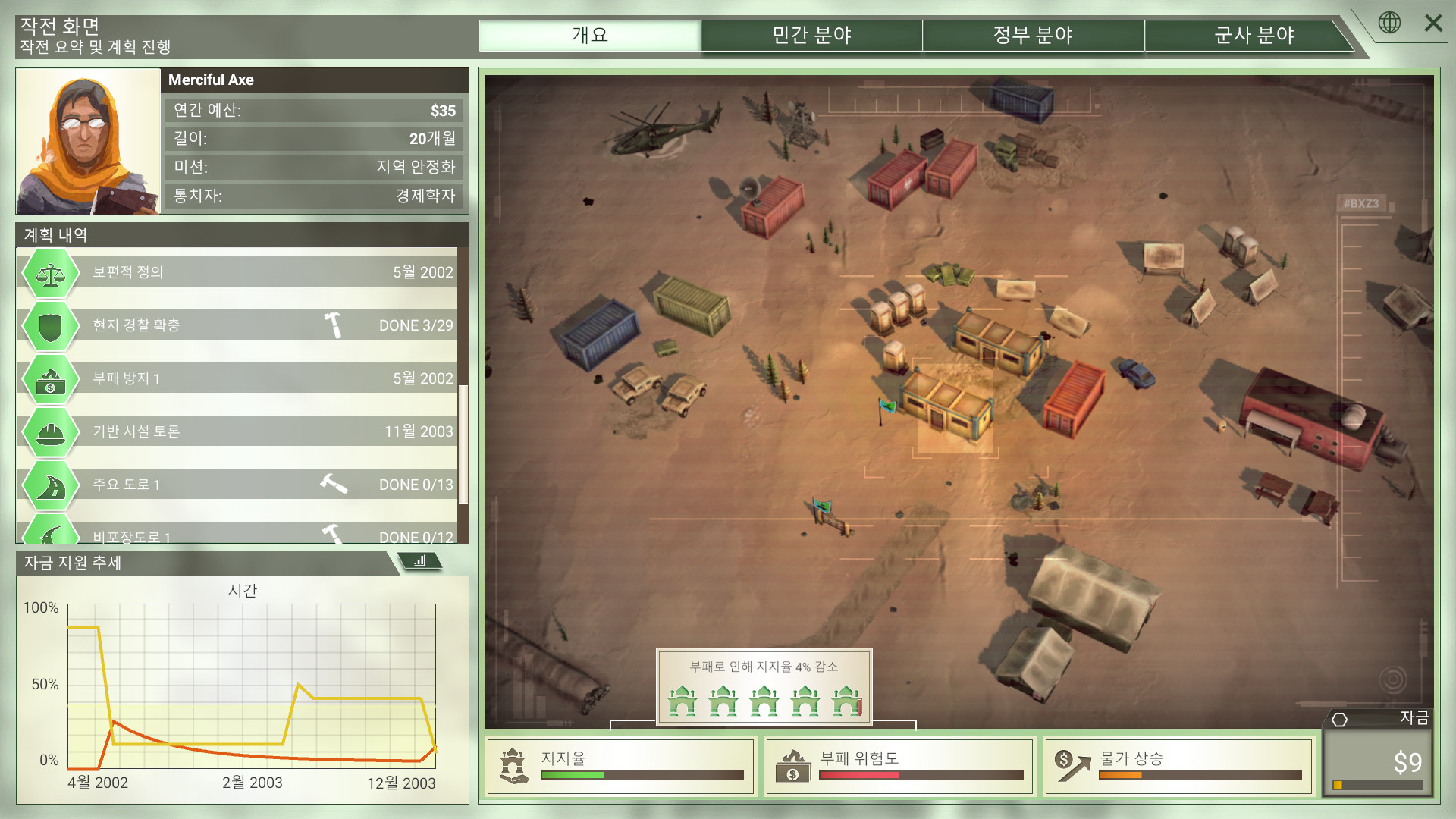 최신 민간 및 군사 AI - 정교한 내러티브 알고리즘이 현지 인구의 요구를 모델링합니다. 동시에 치명적인 반군 공격이 작전에 지속적인 압박을 가합니다.