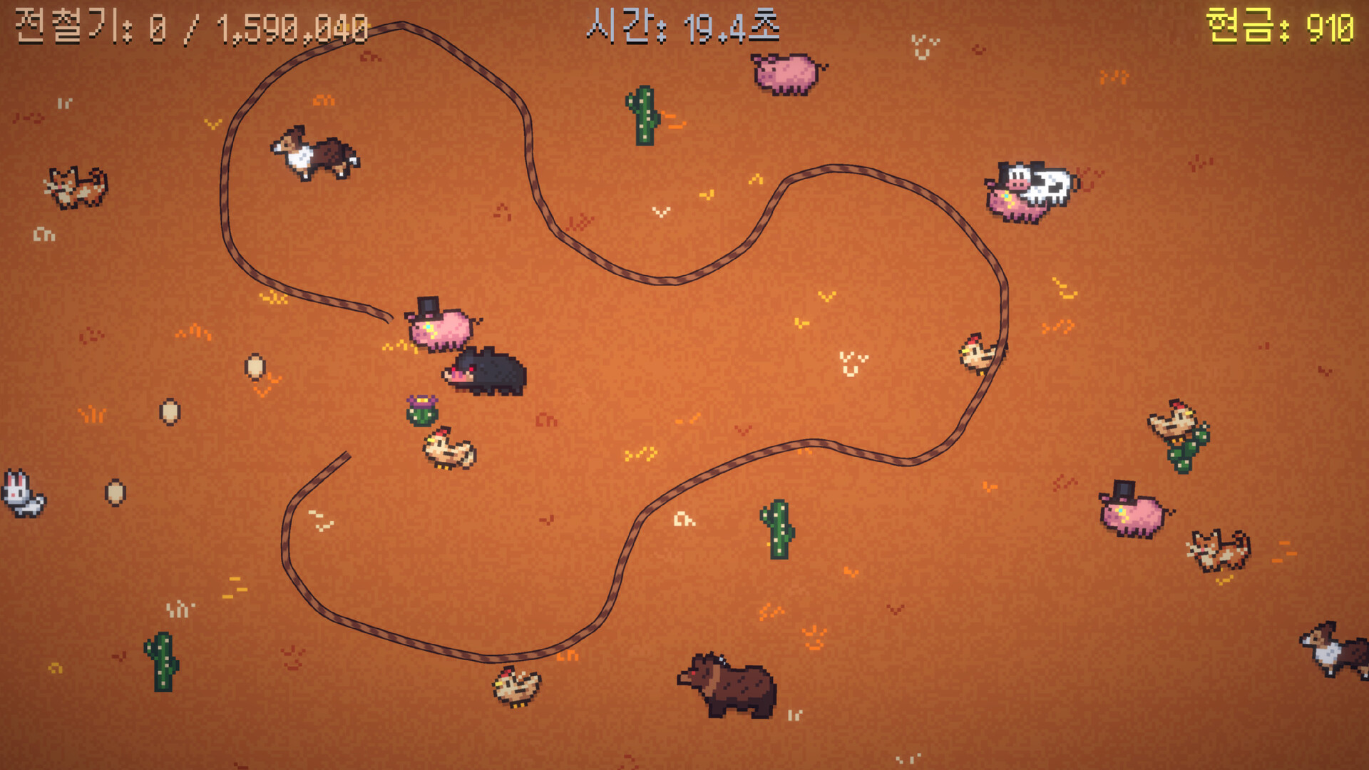 그래도 아직 확신이 서지 않으신다면, 아기자기한 손으로 그린 픽셀 아트, 귀에 쏙쏙 들어오는 블루그래스 사운드트랙, 그리고 애처로운 눈빛의 농장 동물들을 보면 마음이 바뀔지도 몰라요! 가축을 올가미로 잡고, 헛간을 짓고, 난이도를 높여가며 랭글 랜치에서 얼마나 오래 살아남을 수 있는지 도전해 보세요!