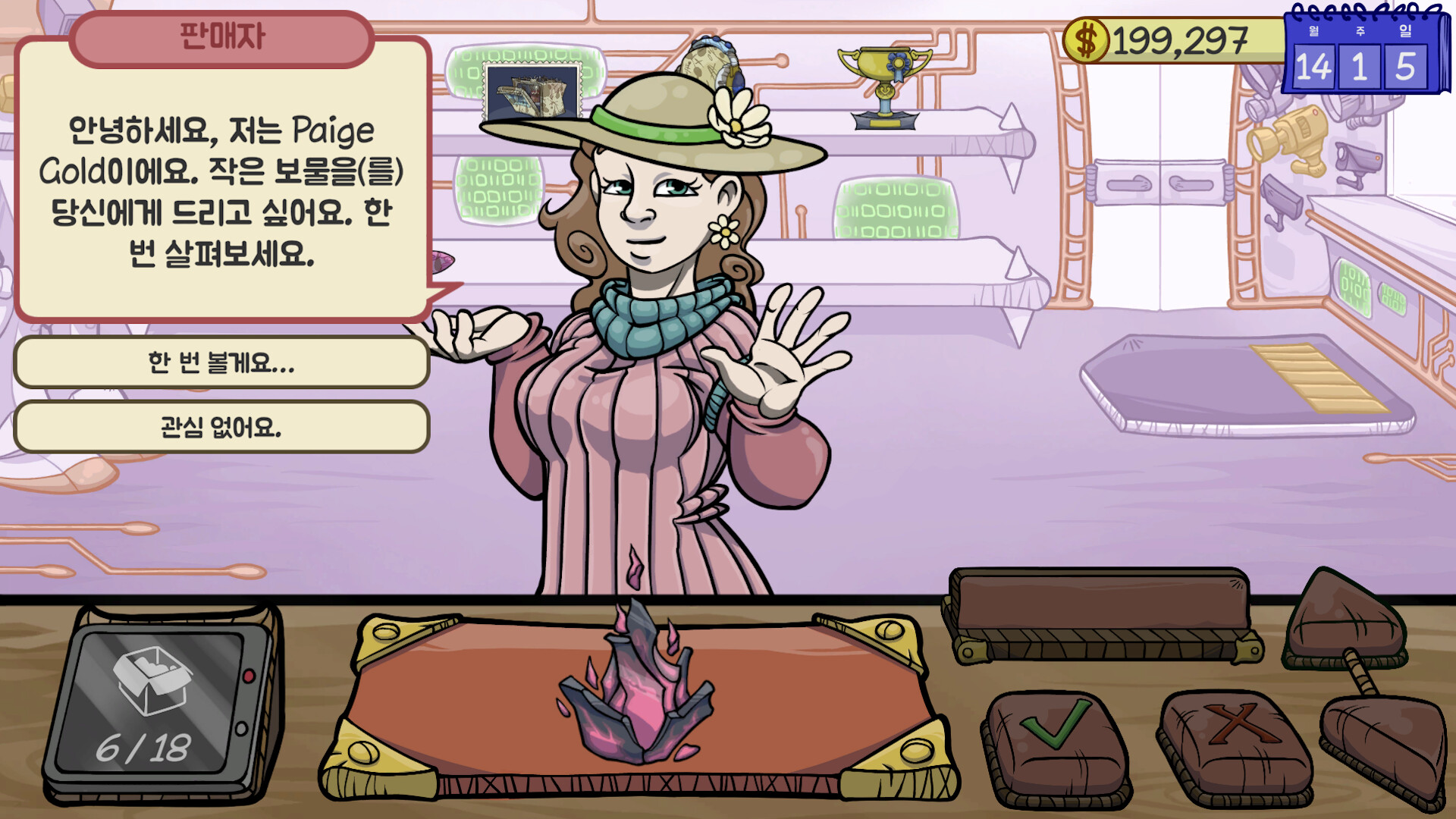 하지만 조심하세요. 딜러가 되기 위한 길은 정말 험난하니 말입니다. 사기꾼부터 순진하기 그지없는 손님, 여러분을 시험하려는 교활한 고객까지 다양한 사람들 속에서, 오직 여러분의 기술만이 이런 상황을 헤쳐 나갈 무기가 될 겁니다!