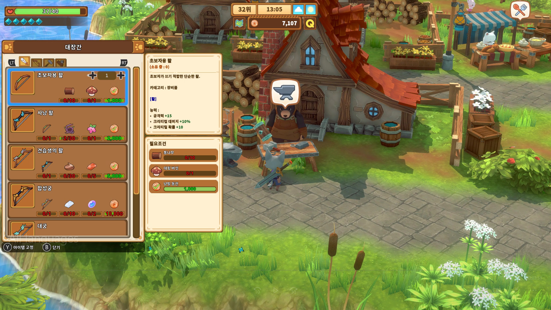 소재와 광물을 모으면 더 강한 무기와 방어구, 장신구를 만들 수 있습니다.