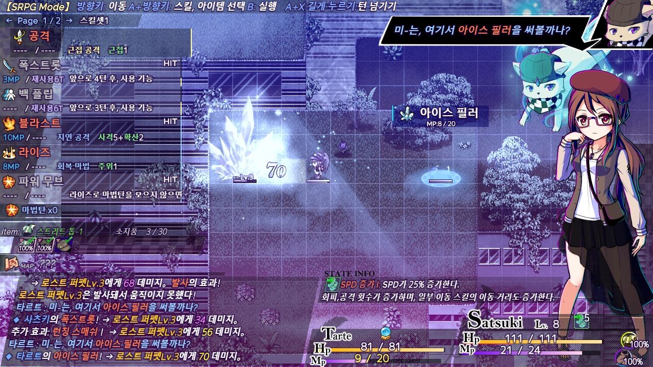 一緒に戦ってくれる精霊タルトの戦闘スタイルを即座に切り替えることができます。