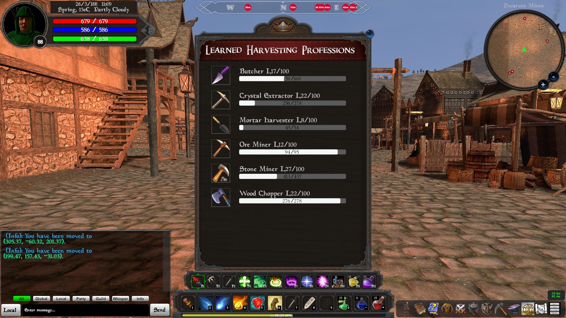 Increase your harvesting proficiency and level as you use the various professions
