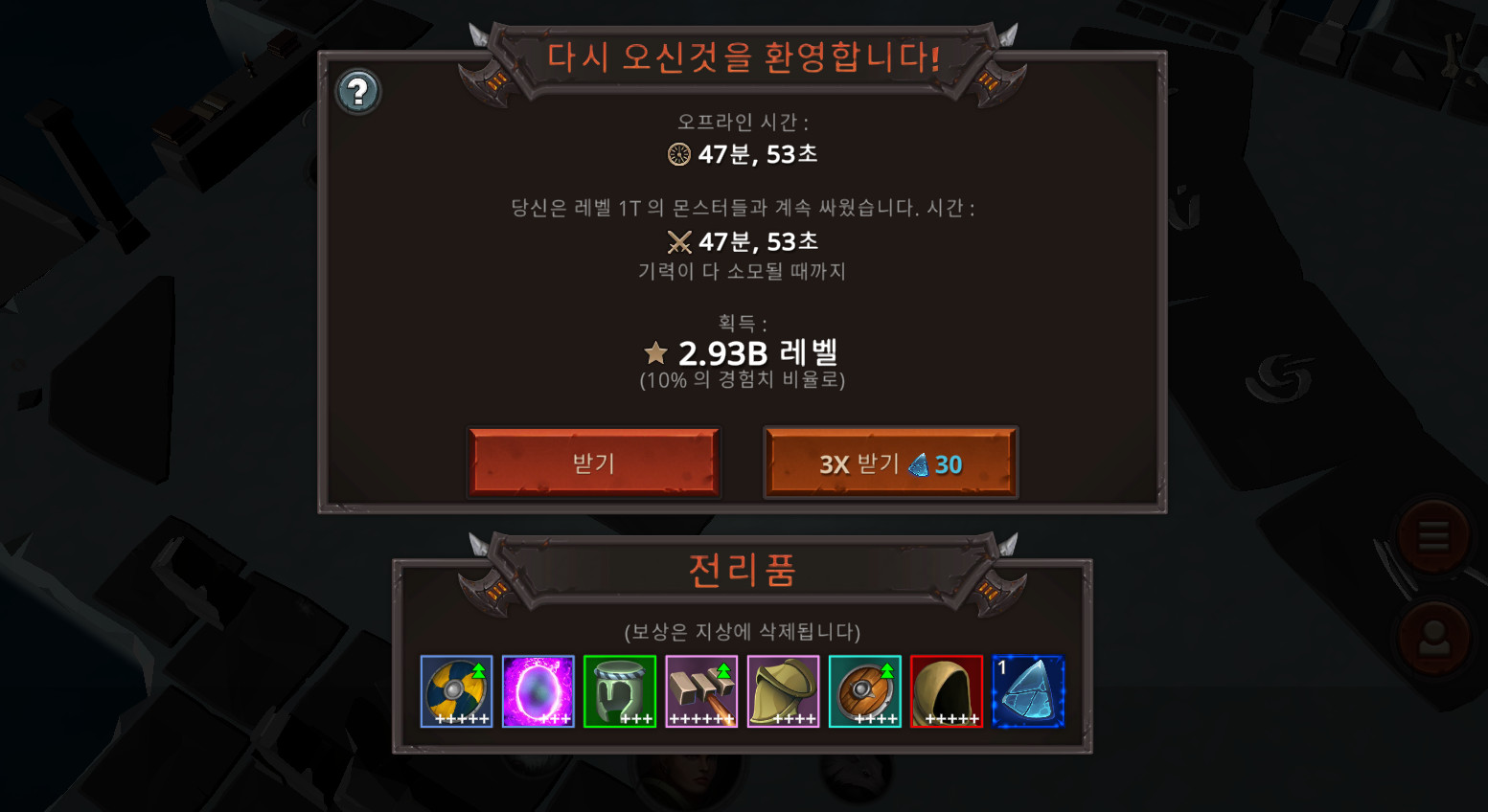 이 반 유휴 롤 플레잉에서 장대한 전리품을 수집하고, 아이템을 제작 및 병합하고, 캐릭터의 레벨을 올려 월드 보스를 물리치세요!
