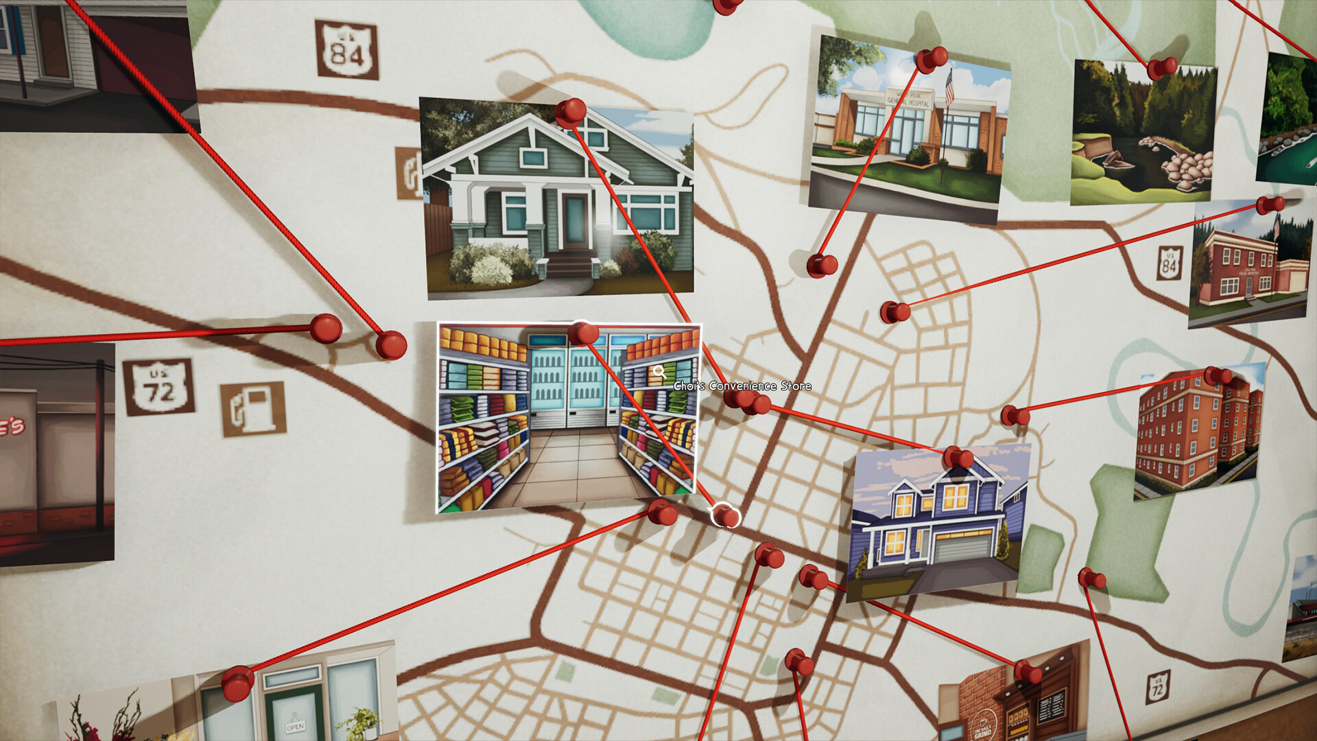 Use the Crazy Wall to pin important pieces of evidence. Connect them to the suspects using string.