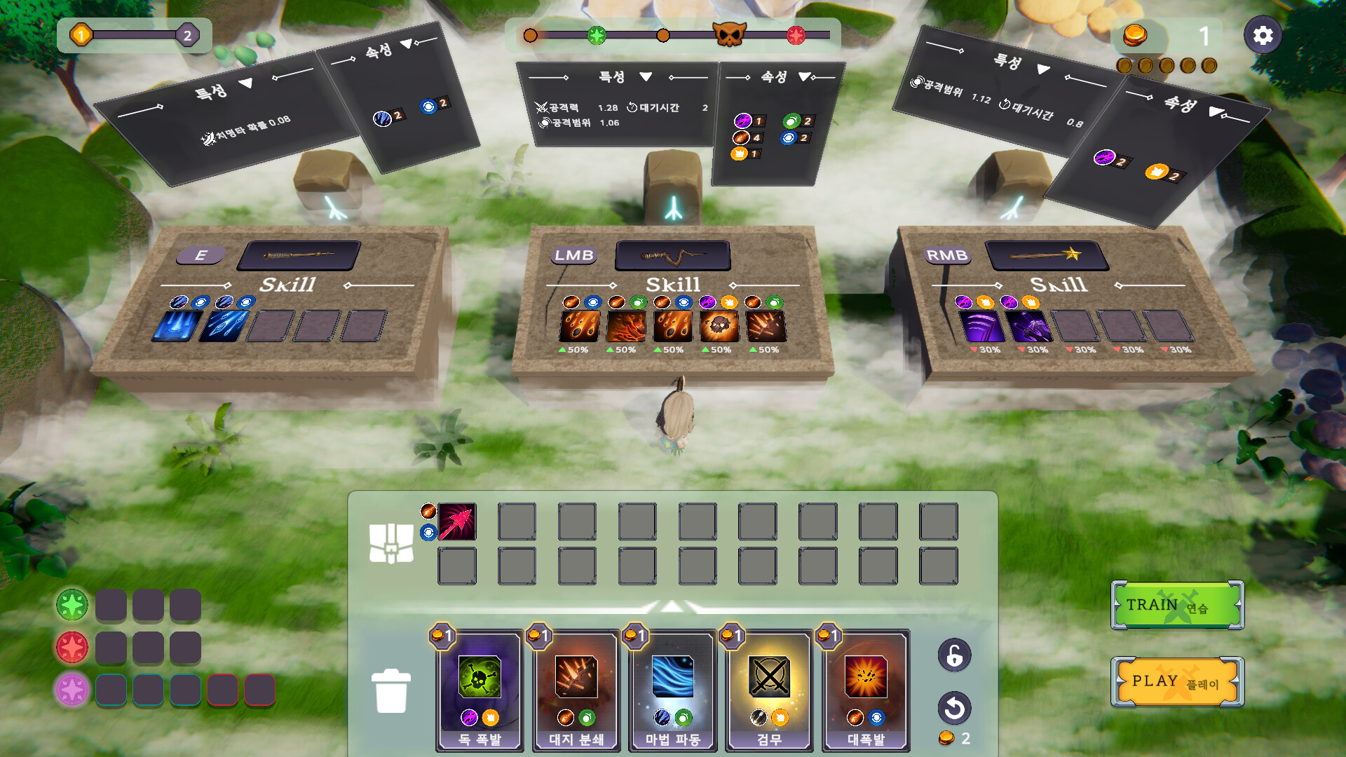 스킬을 구매하고, 합치고, 시너지를 완성해 자신만의 스킬을 만드세요.