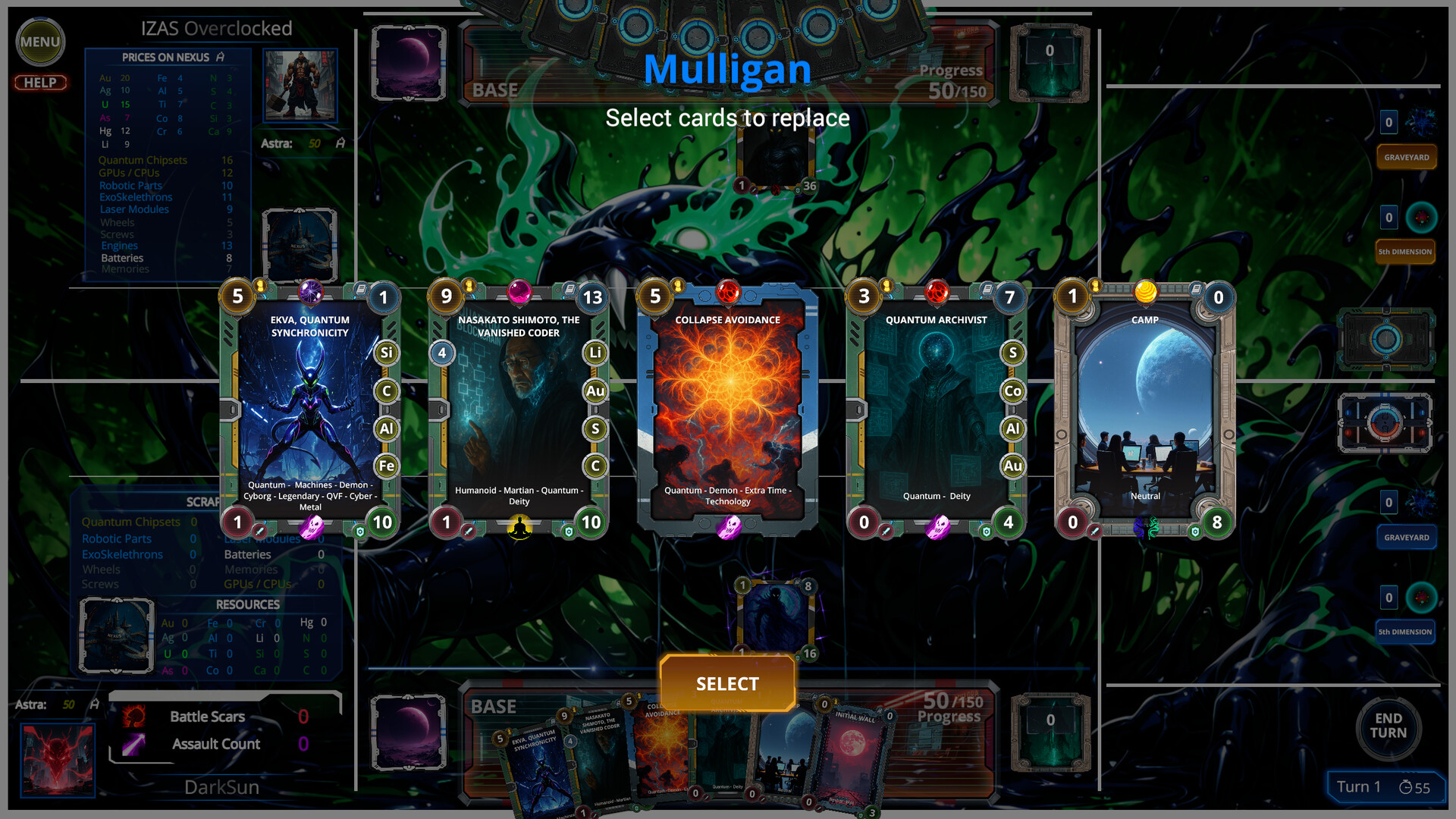 각 턴마다 확률 파동을 붕괴시켜 제5차원(5th Dimension) 에서 양자 얽힘 상태의 생명체를 전장에 구현합니다.