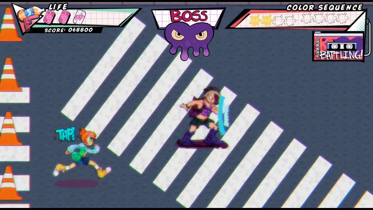 Use your Oranger to hit enemies with the matching color to keep the rhythm alive.