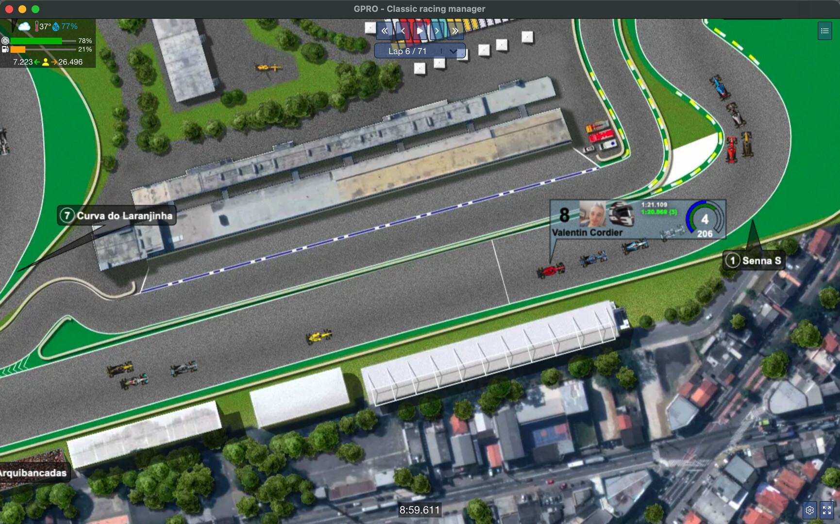 GPRO is a classic long term racing strategy game where your planning, money management and data collection skills are being put to the test. The aim of the game is to reach the top Elite group and win the world championship. But to do so you will need to progress through the levels with many ups and downs. You will be managing a racing driver and a car and you will be in charge of preparing setups and strategy for the race, much like Christian Horner or Toto Wolff do in Formula 1. It will be your job to give your driver the best car, while working with your staff, but you will also have to spend your money wisely. Collect telemetry data from the races you do in order to improve your game and give yourself an advantage over your rivals next time you visit a certain track.