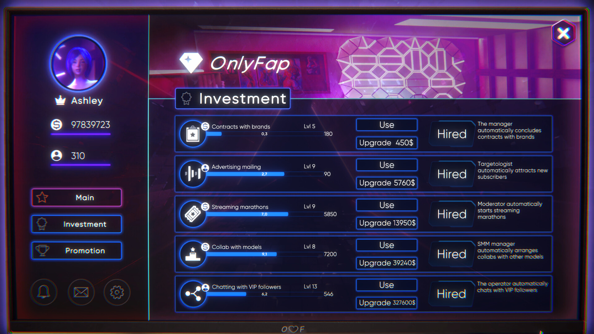 Take control of sexy cam model, rake in stacks of filthy internet money and attract as many fans as you can in this fast paced, click happy and thoroughly perverted take on the business tycoon / management sim genre!