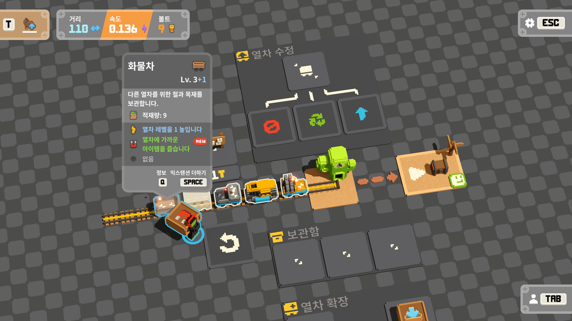 새로운 보상과 영구 업그레이드를 통해 게임 플레이를 변화시키는 능력을 가진 캐릭터를 획득하고, 새로운 기차 엔진, 화물칸 및 확장 장치를 잠금 해제하여 다양한 기차 구성을 만들어 플레이하고 테스트할 수 있는 도구를 제공하므로 모든 여정이 점점 더 의미 있게 느껴집니다. 기관차를 잃을 때마다 재구축하고 다시 트랙에 오를 수 있는 기회가 주어집니다!