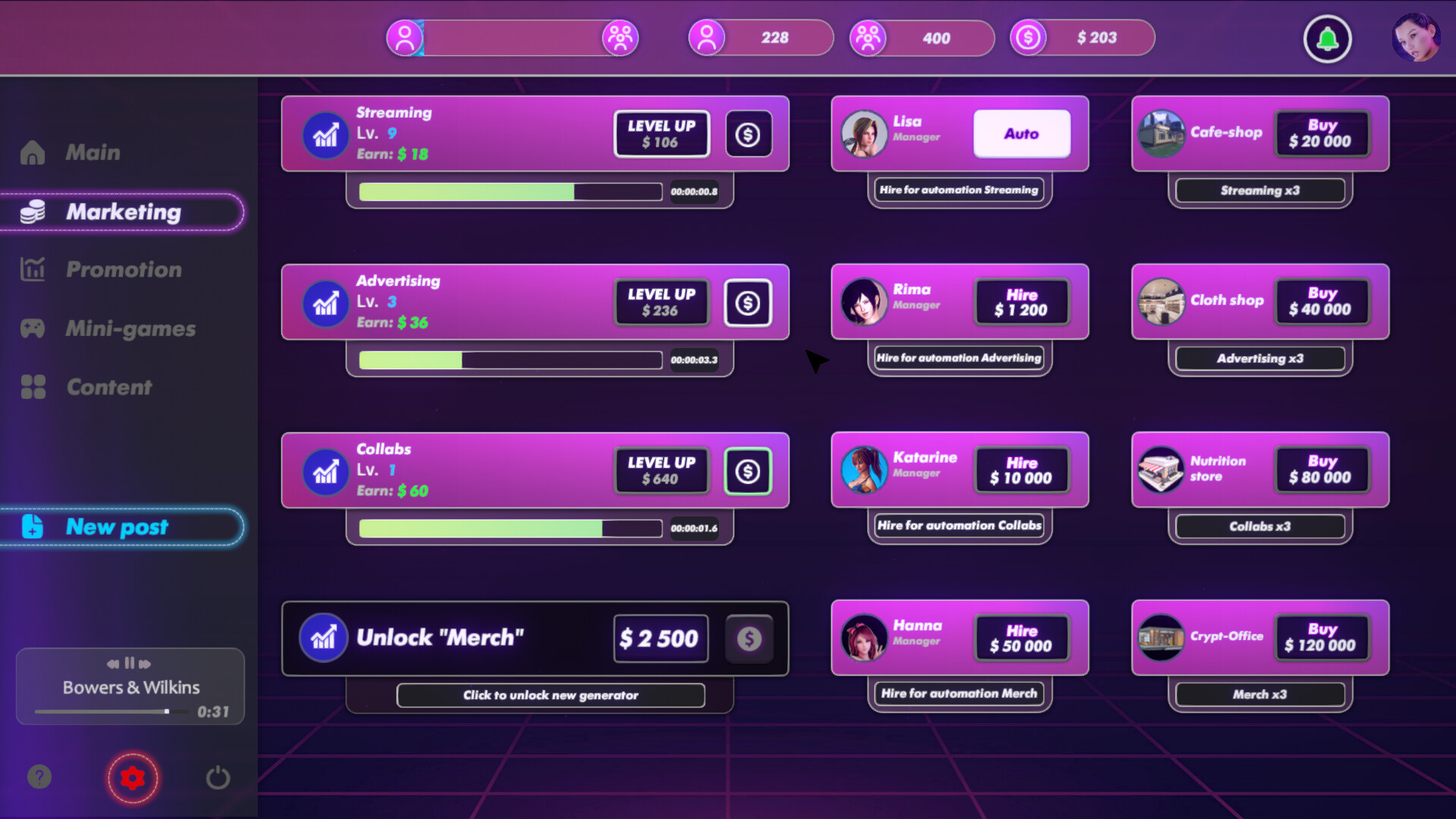 - Unlock upgrades to boost profits