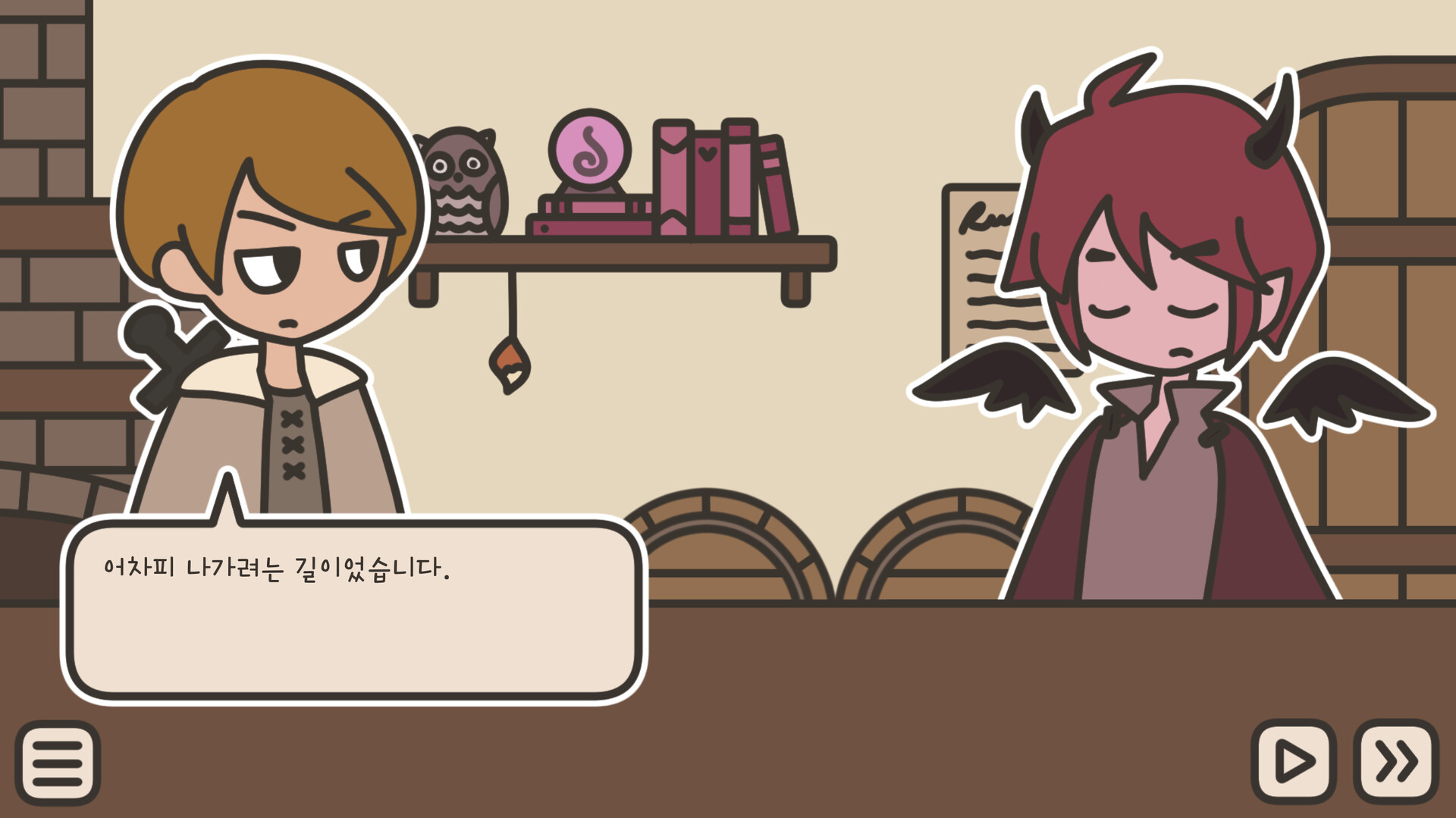 국경의 끝, 인간과 악마들이 사는 곳 사이에는 작은 술집이 하나 있습니다. 이곳에서는 술이 아닌 오직 차만 파는데, 무슨 이유에서인지 여행자들은 이곳의 문을 그냥 지나치지 못 하는 것 같네요.A TAVERN FOR TEA는 판타지 차 끓이기 시뮬레이터이자 비주얼 노벨입니다. 판타지 술집 주인으로서, 손님들조자 본인이 필요한 줄 몰랐던 차를 끓여 내주세요.