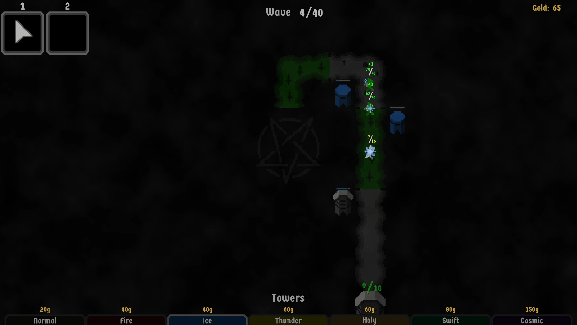 Kreeps is a tower defense game where you choose how your towers and the enemies scale as the game progresses.