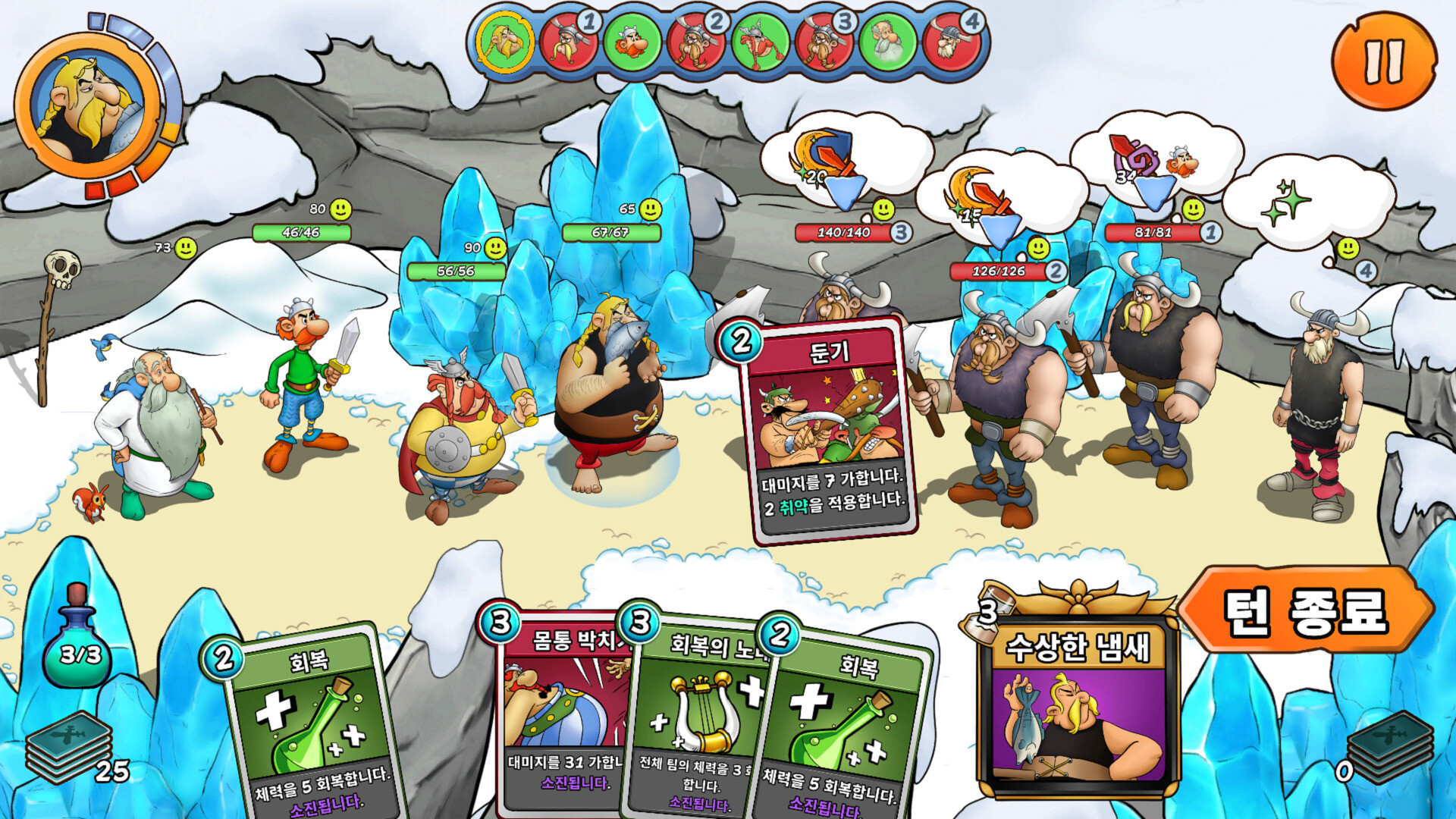 각 카드는 멘히르로 강력한 피해를 주거나, 제타픽스의 포션으로 영웅을 치유하는 등, 전략을 진행시키기 위해 사용할 수 있습니다! 각 라운드에 적응해 올바른 결정을 내리고 예를 들어, 유명한 애증의 관계, 언하이지닉스와 풀리오토마틱스를 섞는다는 예측 불가능한 만큼 파괴적인 콤보를 만들어 내는 건 여러분의 몫입니다.