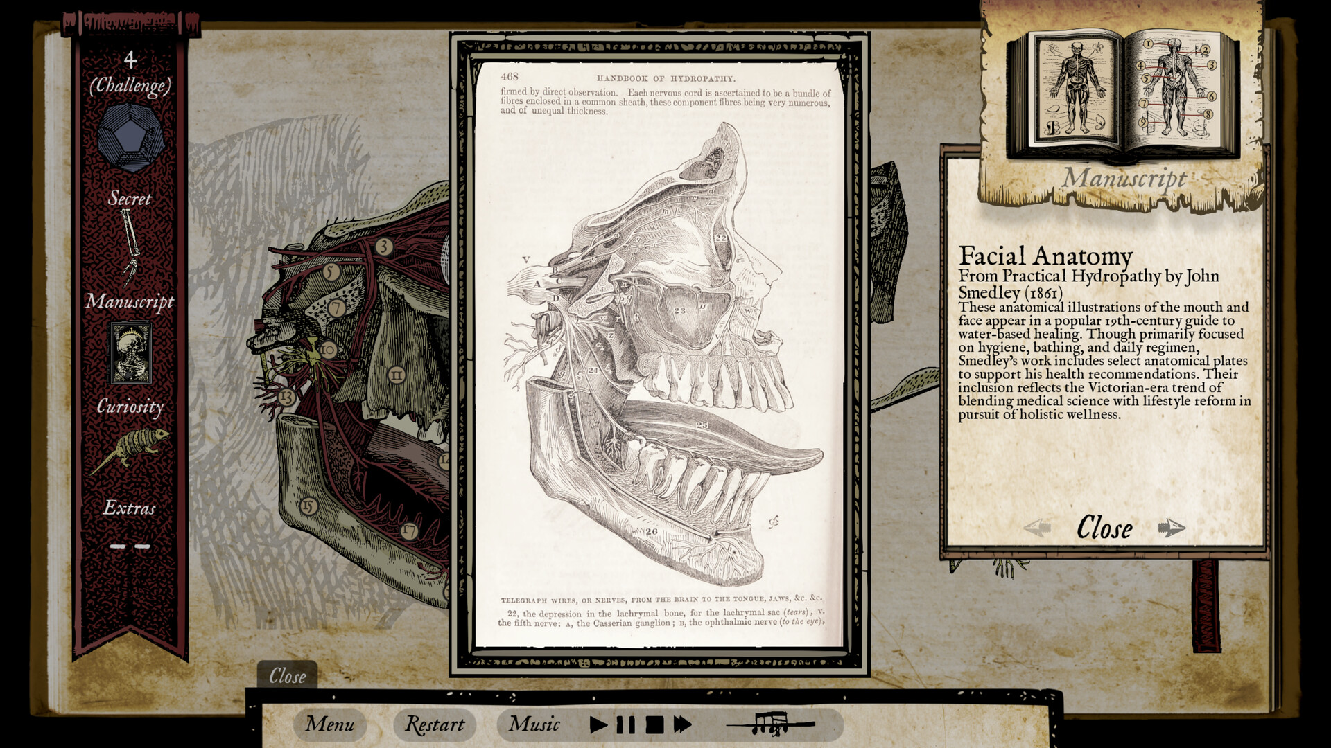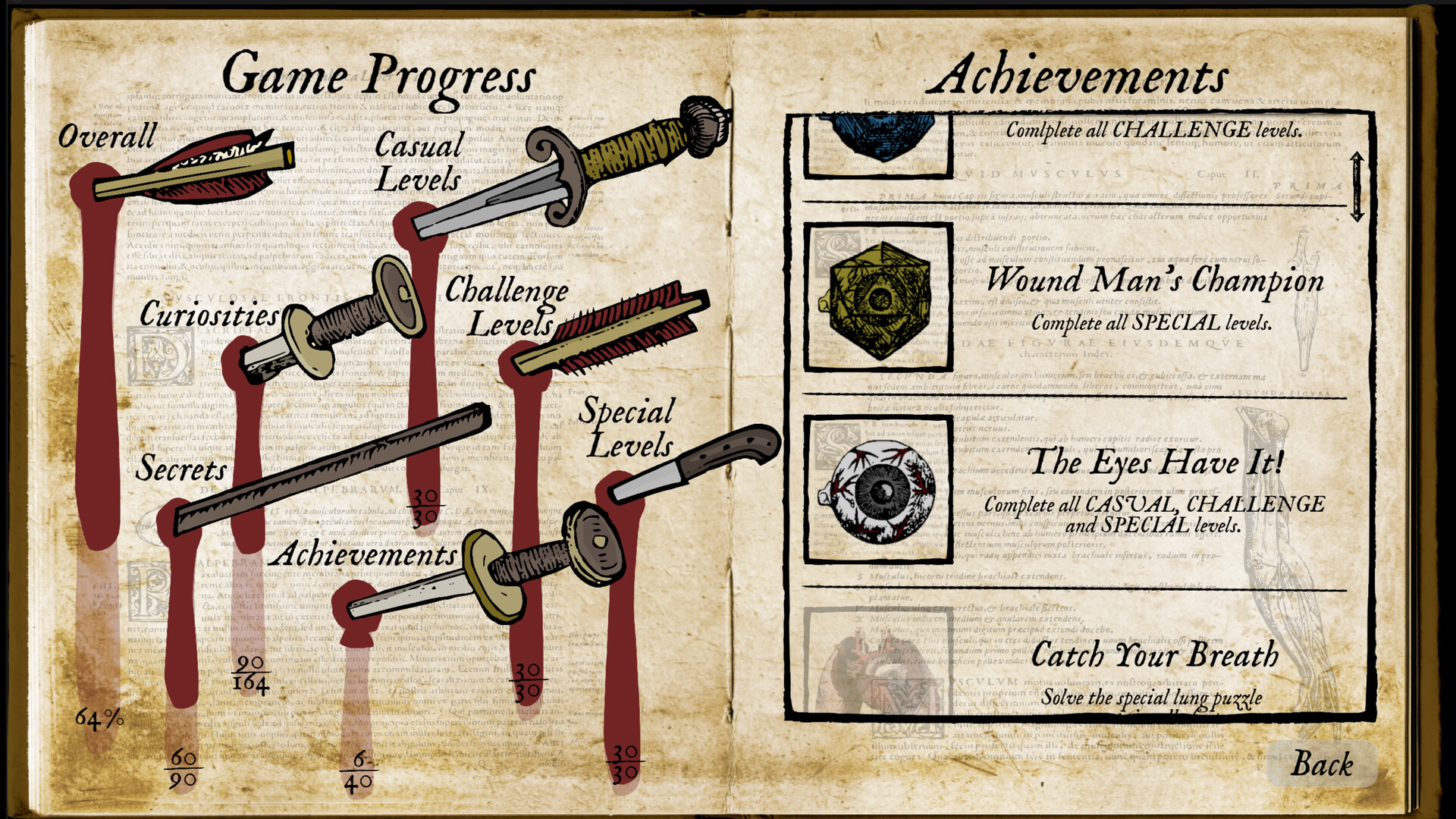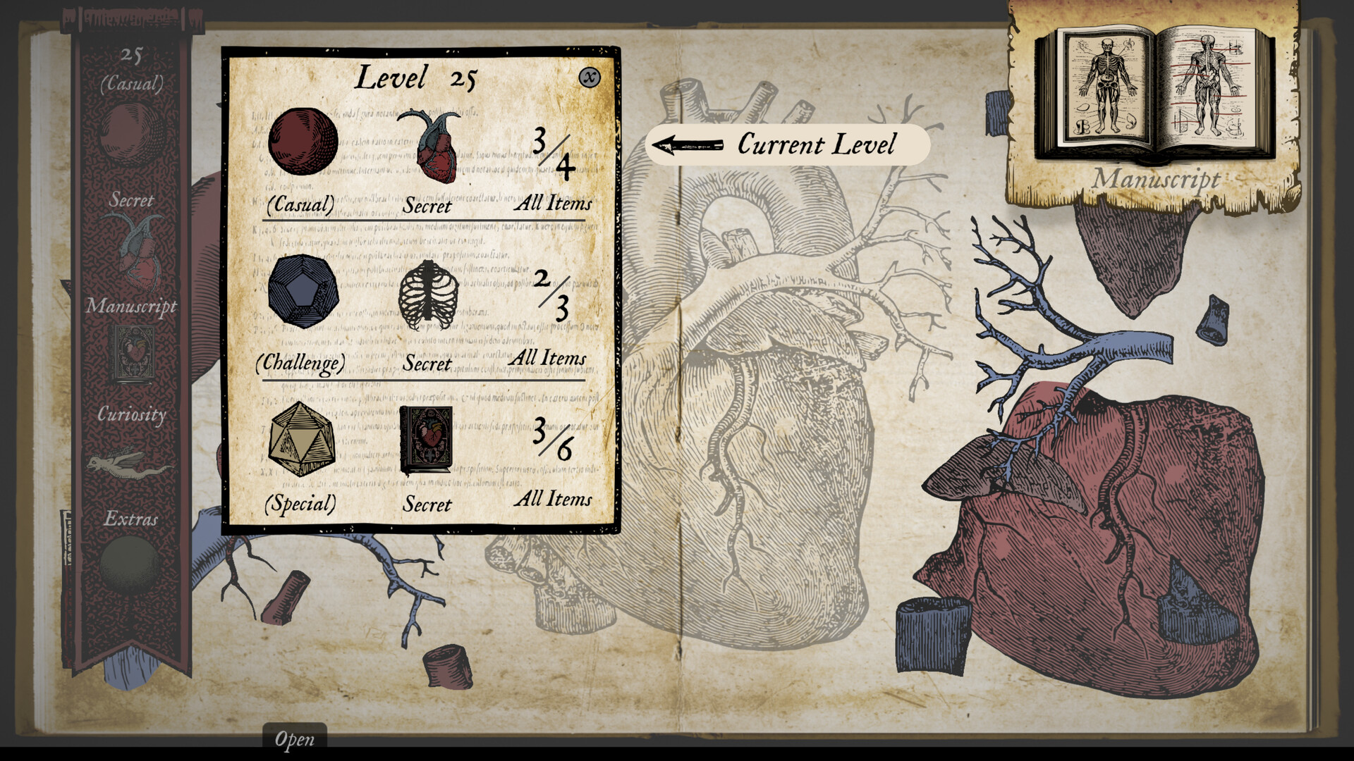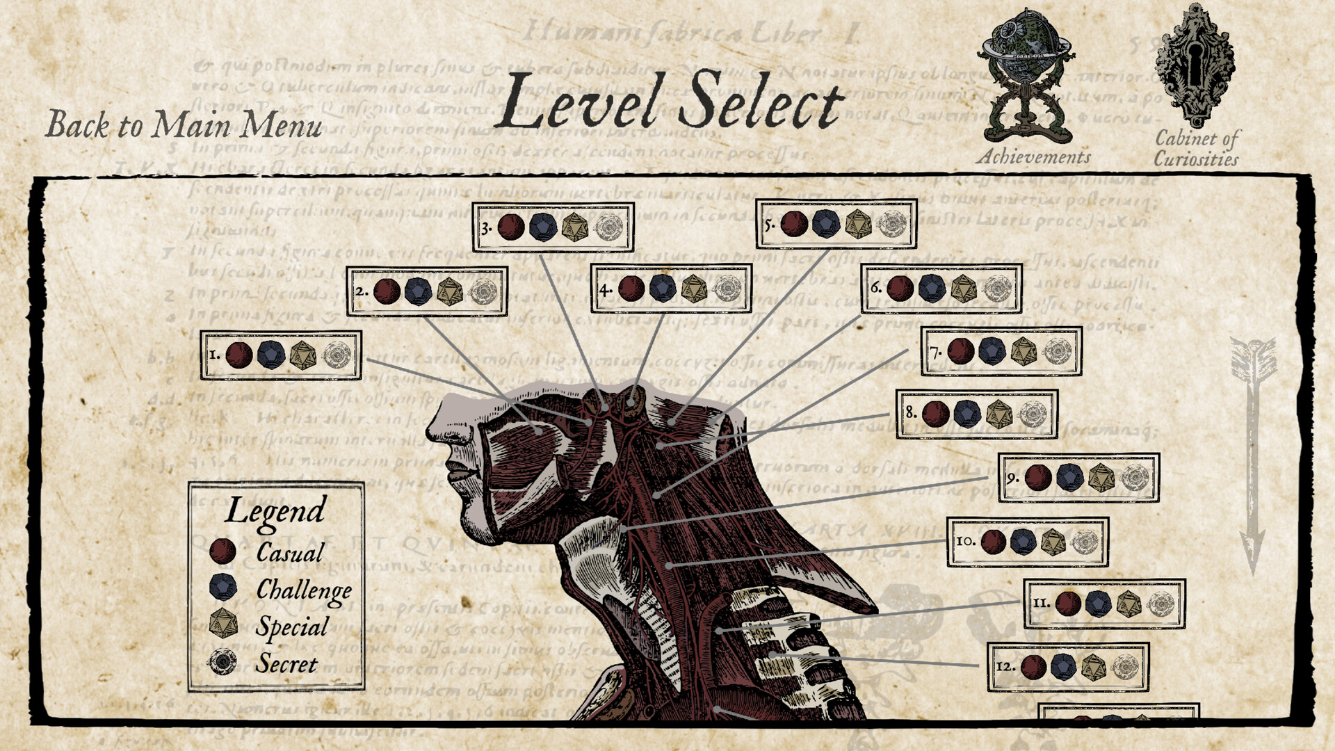 Uncover over 170 strange and unsettling artifacts, each hidden within the fabric of the game’s anatomical worlds. From peculiar creatures to forgotten instruments, every discovery expands your Cabinet of Curiosity, a growing archive of the bizarre and the macabre.