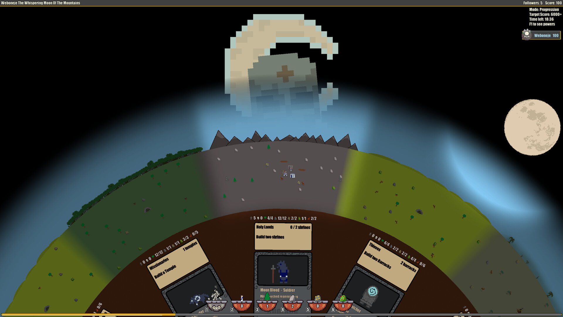 - Use powerful miracles to shape the land and influence your people