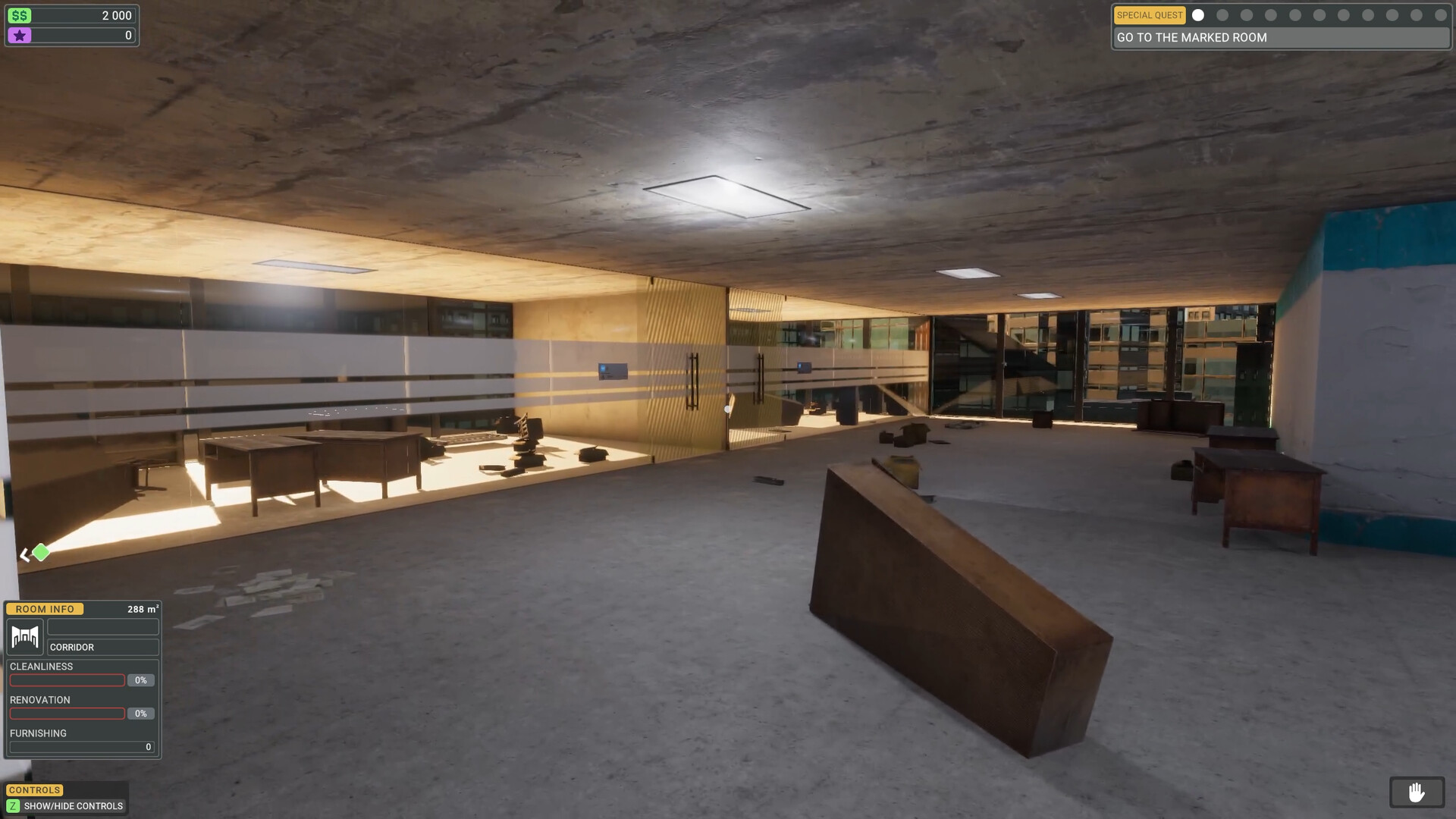 모든 공간을 청소하고, 수리하고, 가구를 배치하고, 관리하세요. 고장, 세입자 요구, 그리고 매일 발생하는 재난(때로는 비유적인 의미, 때로는 문자 그대로의 화재)을 처리하세요. 건물이 수익을 내기 시작하면… 언젠가는 마침내 당신의 소유가 될 수도 있습니다. 리모델링, 수리, 반복… 직접 관리에 참여하세요. 쓰레기 수거, 바닥 청소, 방치된 공간 복원, 벽 수리, 페인트칠, 타일 시공, 가구 배치, 쓸모없는 물건 판매를 통한 추가 리모델링 자금 마련, 비어 있고 망가진 공간을 기능적인 사무실로 탈바꿈시키는 것까지 모두 관리하세요. 모든 결정에는 시간과 비용이 소요되며, 잘못된 선택은 결국 후회로 남을 수 있습니다. 사무실 공간 관리, 사무실과 회의실부터 화장실, 복도, 설비실까지 모든 공간에는 각자의 관리 영역이 있습니다. 자신의 역할과 문제점을 파악합니다.
