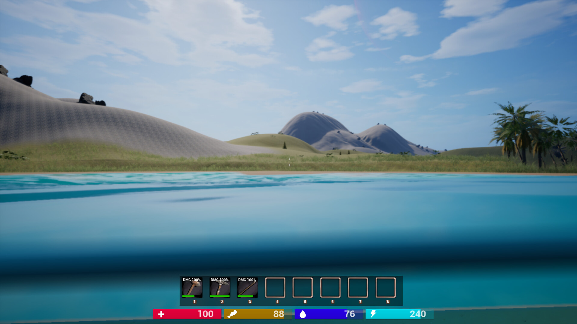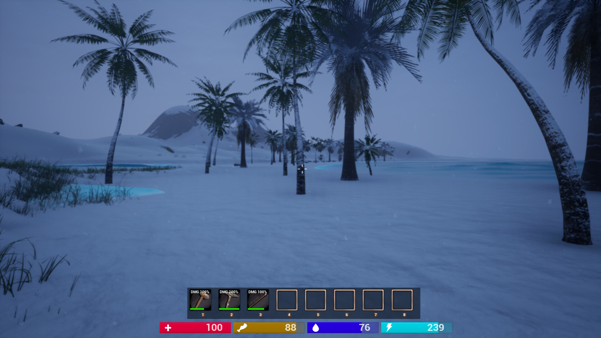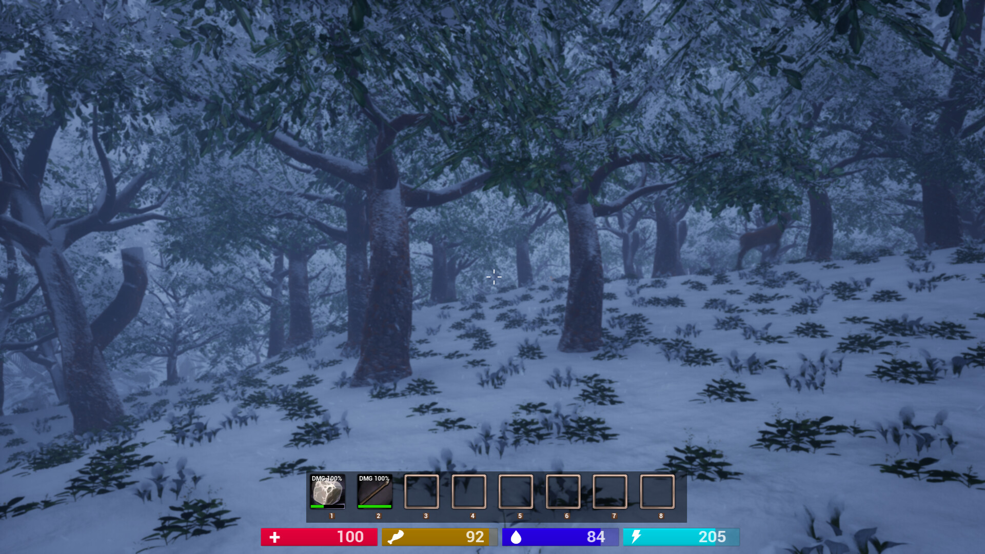 section for a game where players need to survive from wildlife, mine resources, craft items and structures,