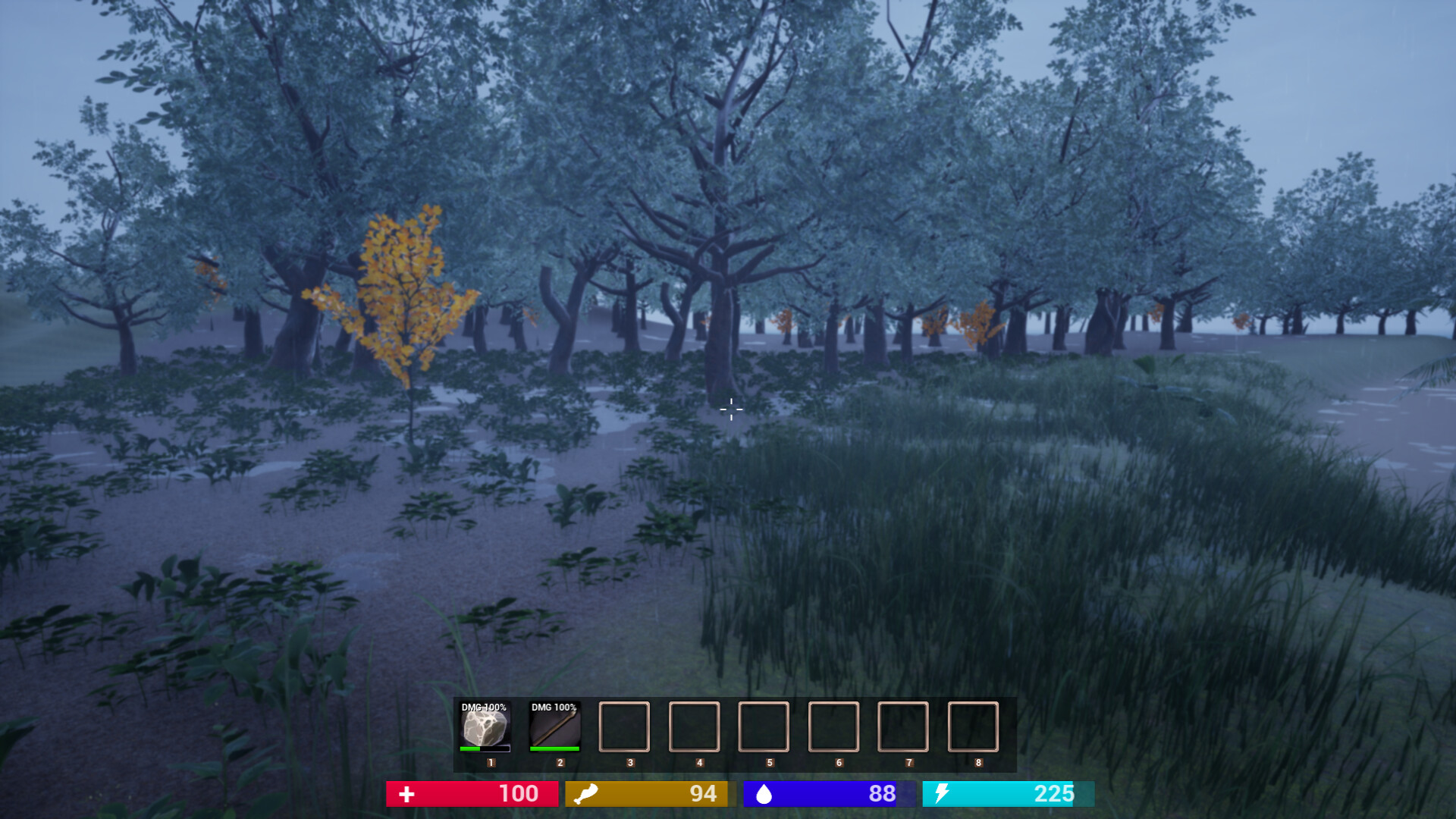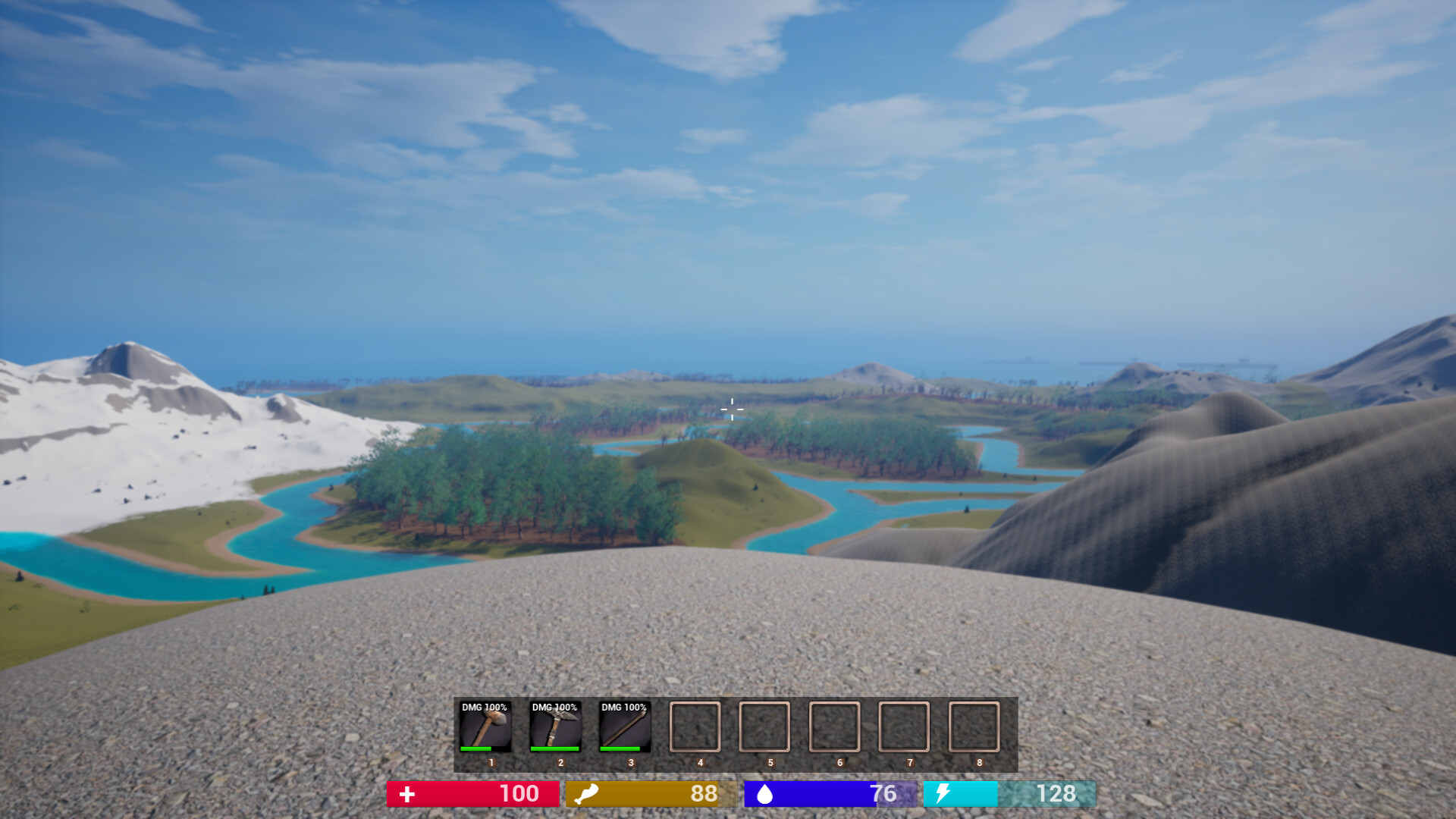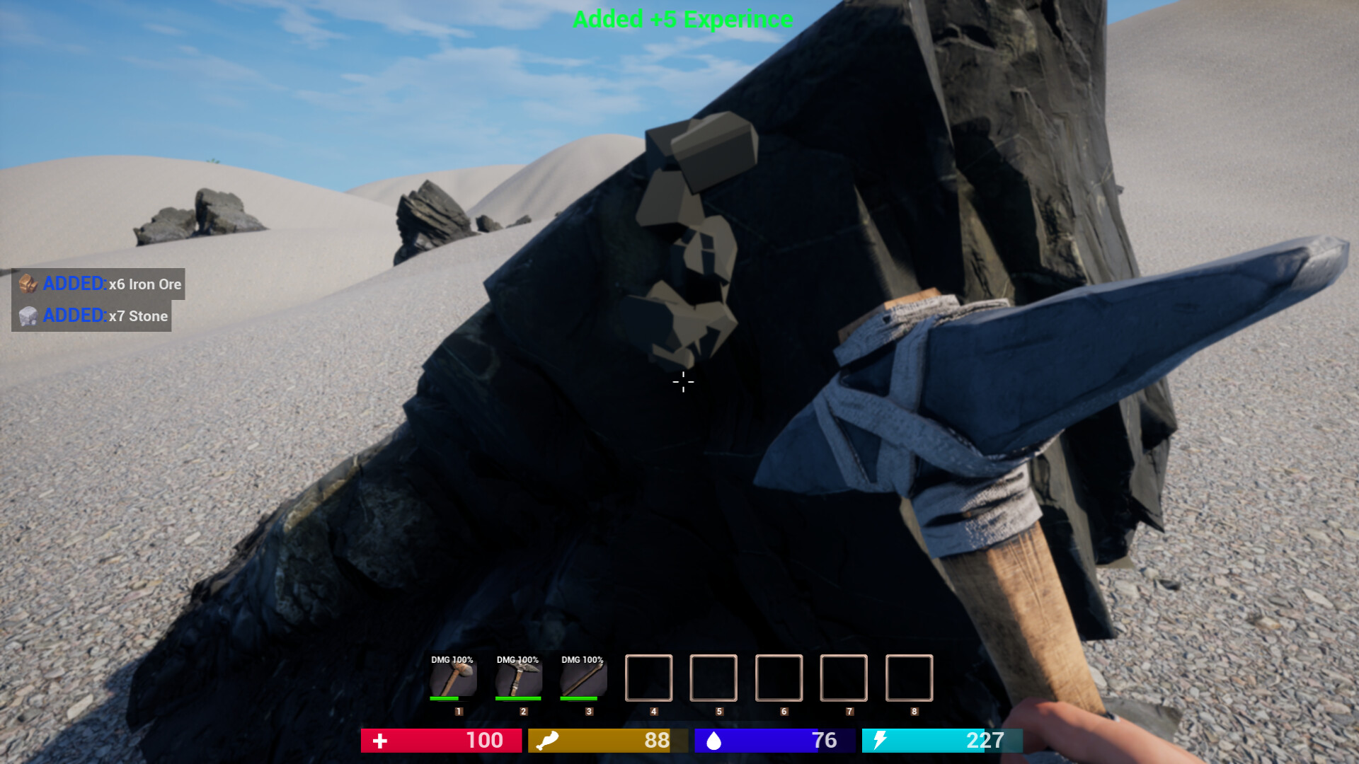 section for a game where players need to survive from wildlife, mine resources, craft items and structures,