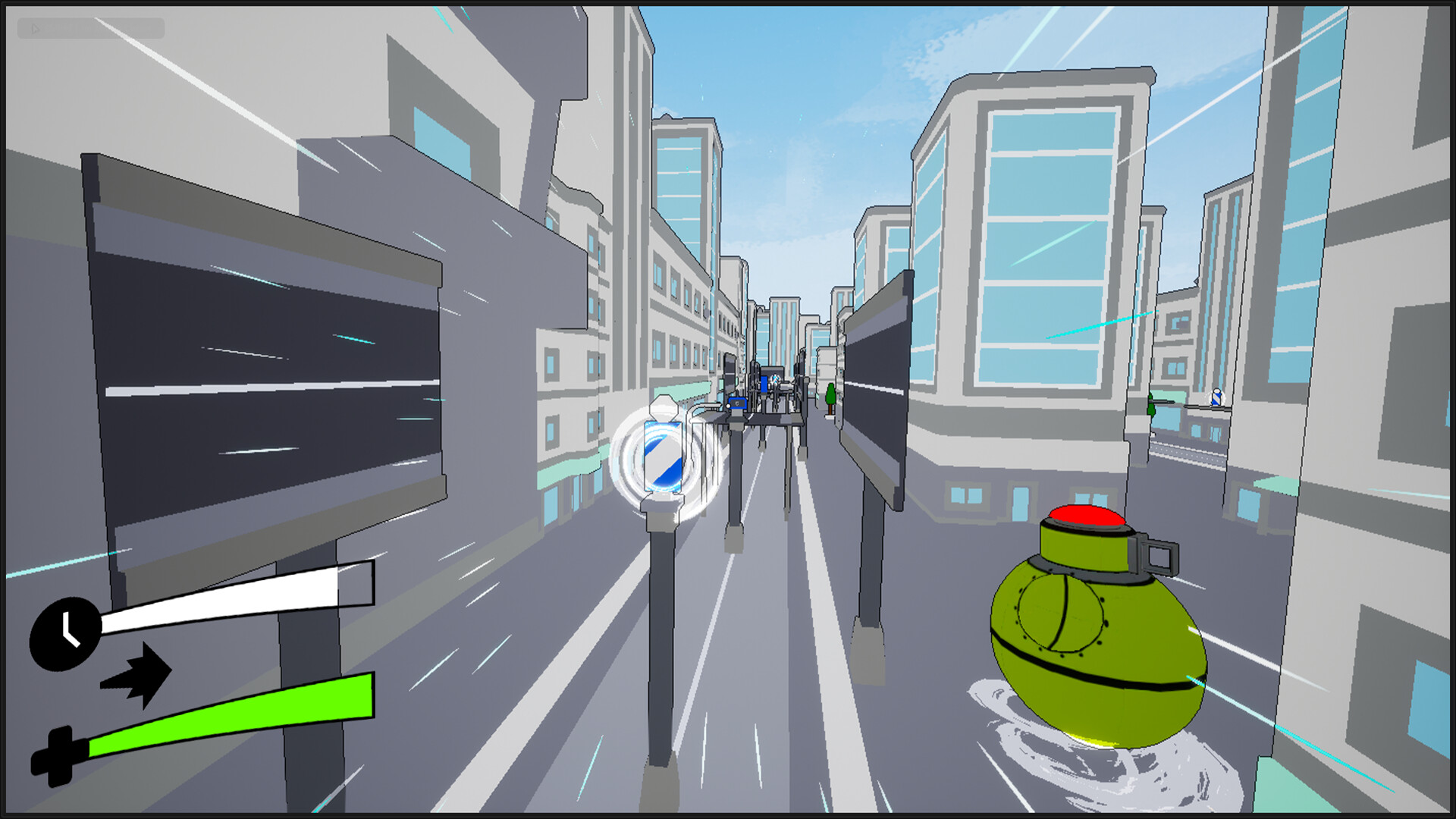 Do whatever it takes to progress upwards and onwards. Run on the walls, dash forward, slow the time down, use grapple and jetpack and even a jet!