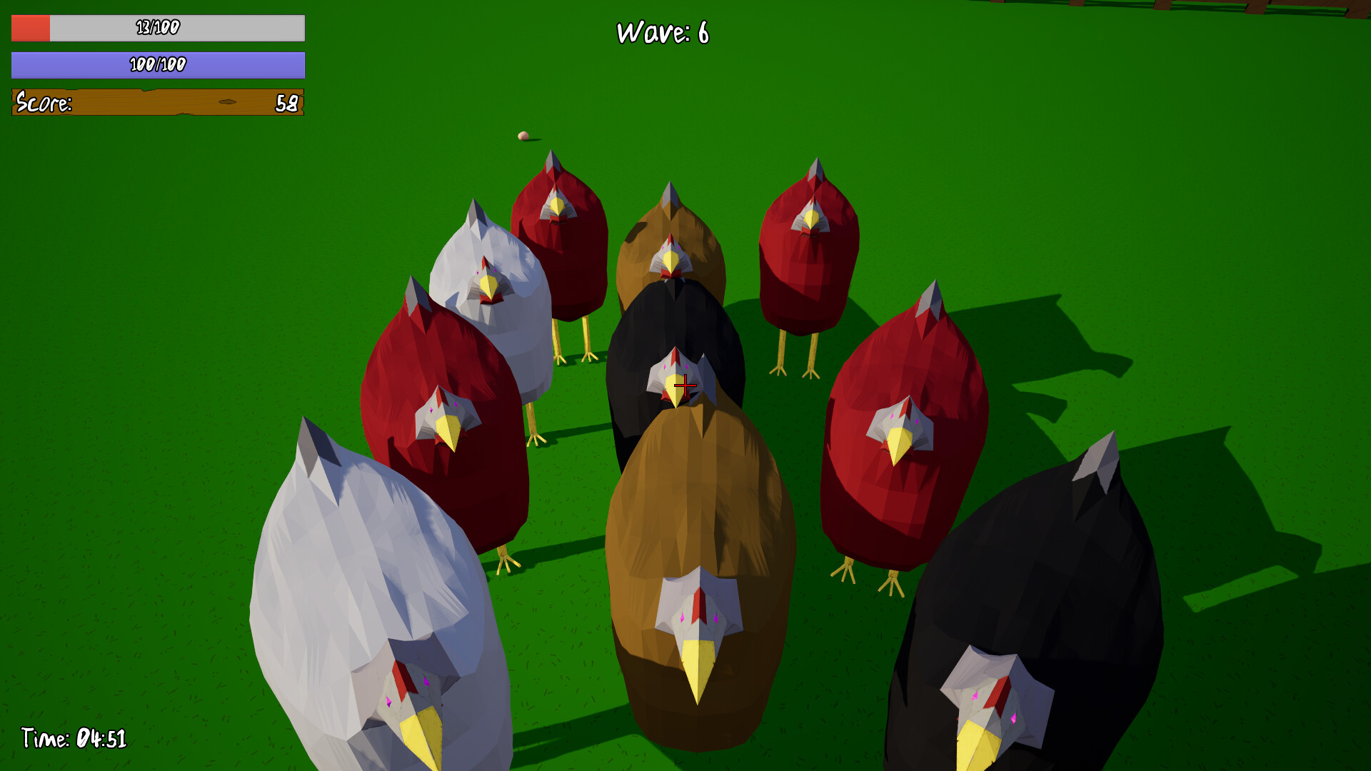 - Chickens will occasionally lay eggs which will spawn baby chickens at the start of the next wave.