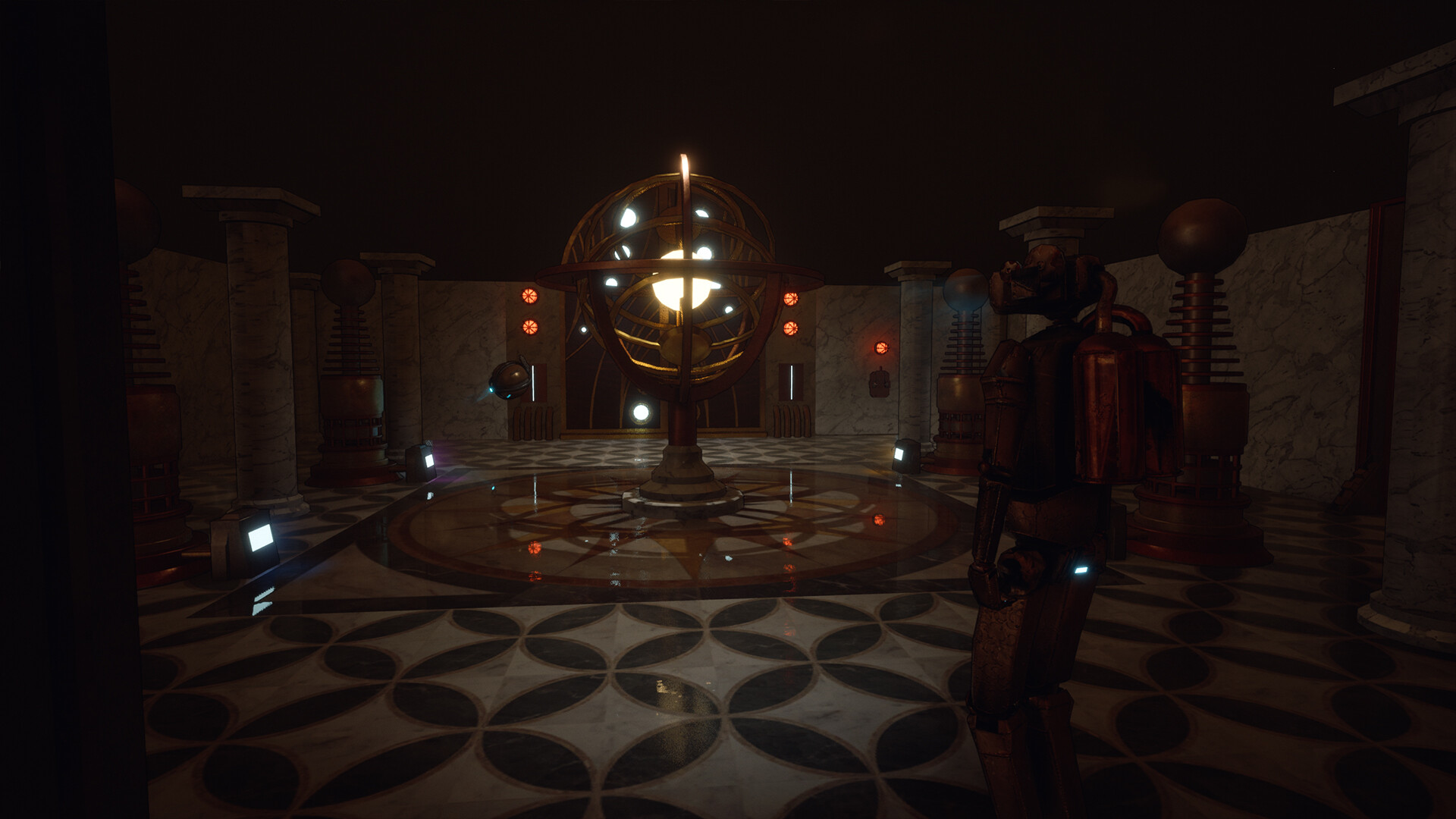 The adventure takes place in a steampunk universe, within a Great Clock (thought as Big Ben), an unpretentious building where scientific activity takes place, as part of research into new energy sources... or so the story goes.You take on the role of an automaton, limited to moving, running and interacting, accompanied by a calculator-being that will stick with you until the end of the adventure.