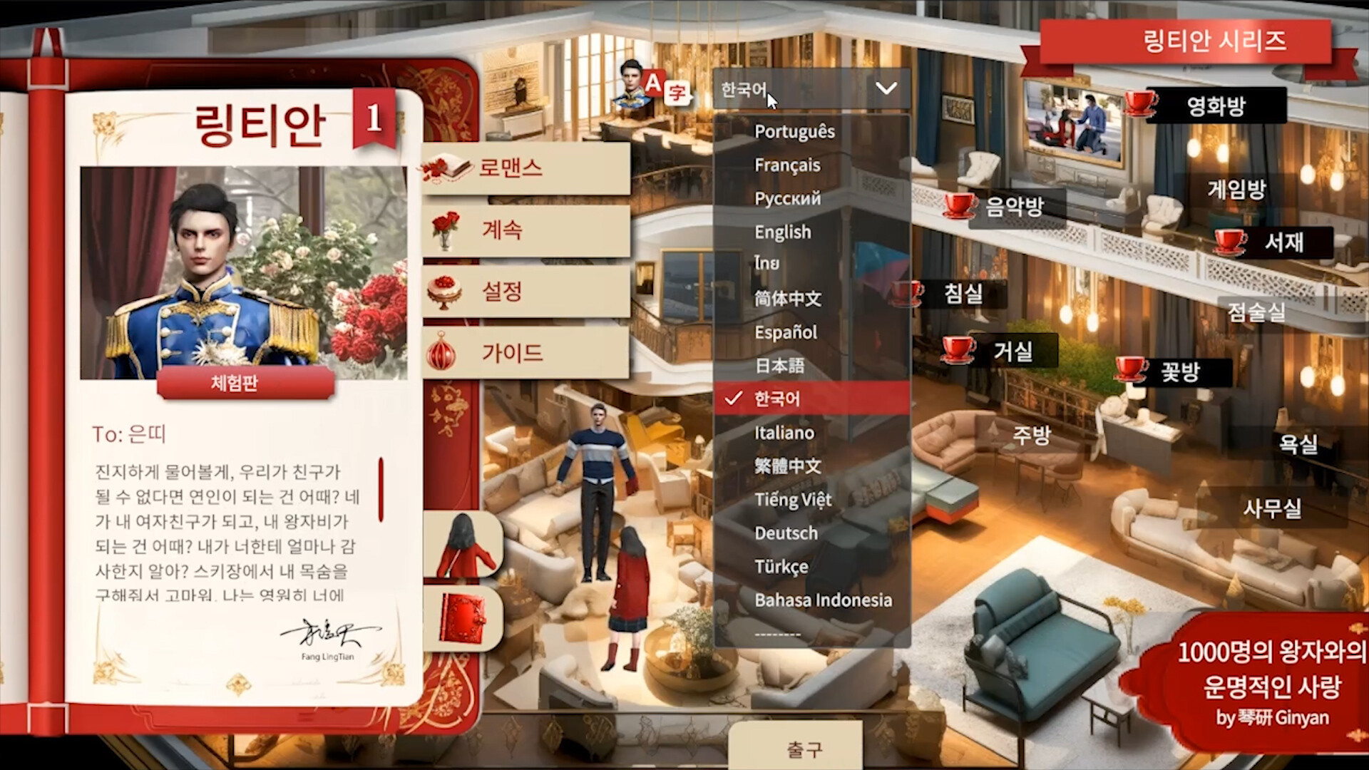 ▌왕자와 당신 **링티안**: 방국의 왕자이자 왕위 계승 4순위. 키가 크고 잘생기며 바르고 부지런합니다. 왕자는 당신의 착한 마음에 깊이 사랑에 빠졌으며, 사랑의 탐구 이벤트 이전에도 당신을 방궁에 데려오기 위해 큰 노력을 기울였습니다. 오직 당신을 보답하고 보호하며 사랑하기 위해서죠.