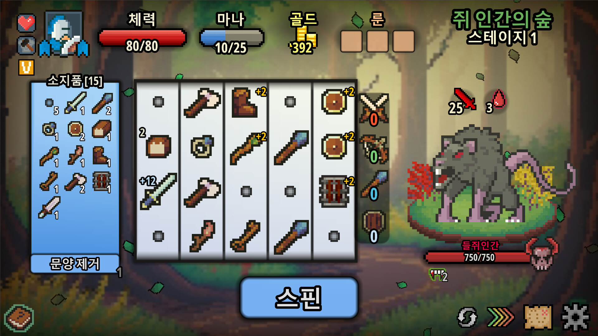 스핀을 돌려 전투의 운명을 시험하고, 강력한 문양들을 모아 소지품의 위력을 강화하세요. 자신의 전략을 적응 및 발전시키고, 실패로부터 교훈을 얻어 새로운 가능성과 독특한 조합을 찾아 보세요.