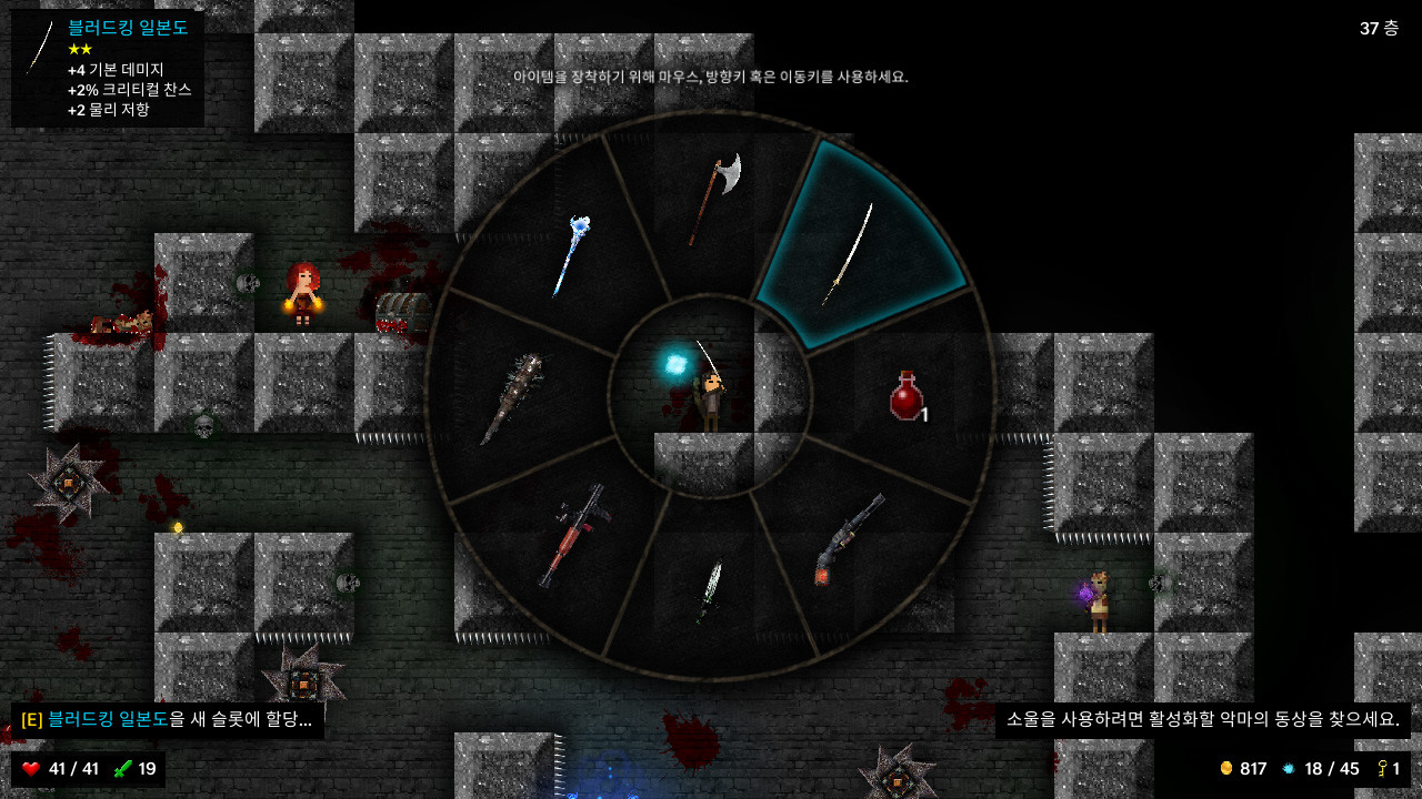 랜덤하게 레벨이 생성되는 액션 로그라이크 게임! 각 방은 게임이 진행될수록 커집니다!