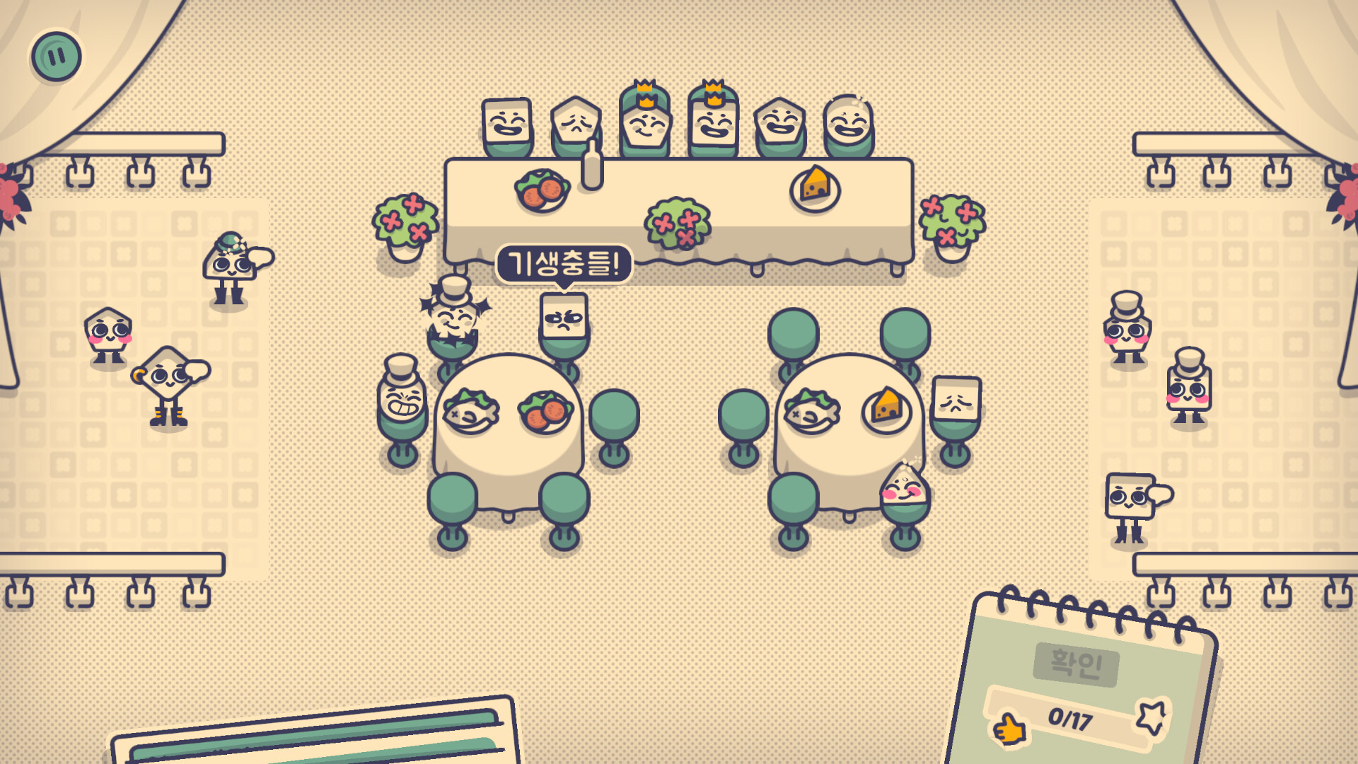 까다로운 캐릭터들을 만족시키는 자리 앉히기 게임입니다.