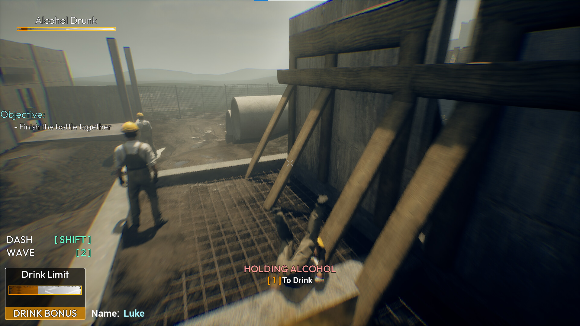 플레이어 중 한 명은 술에 취한 플레이어를 잡아야 하는 현장 감독 역할을 맡는 건설 시뮬레이터입니다. 나머지 술 취한 플레이어들은 살아남기 위해 건설 현장에서 뛰어다니고 숨고 술을 찾아야 합니다. 모든 플레이어가 술을 깨면 감독이 승리합니다. 나머지 플레이어는 건설 작업을 완료하면 승리합니다. 친구 또는 무작위 플레이어와 1대 2, 1대 3 또는 1대 4로 플레이하세요. 3가지 게임 모드 기본 게임 모드에서는 플레이어가 술을 깨고 팀원의 도움을 받아야 합니다. 기본 게임 모드에서는 플레이어가 술을 깨면 일정 시간 후 다시 나타납니다. 파괴 모드에서는 더 많은 물체를 파괴하는 쪽이 승리합니다.