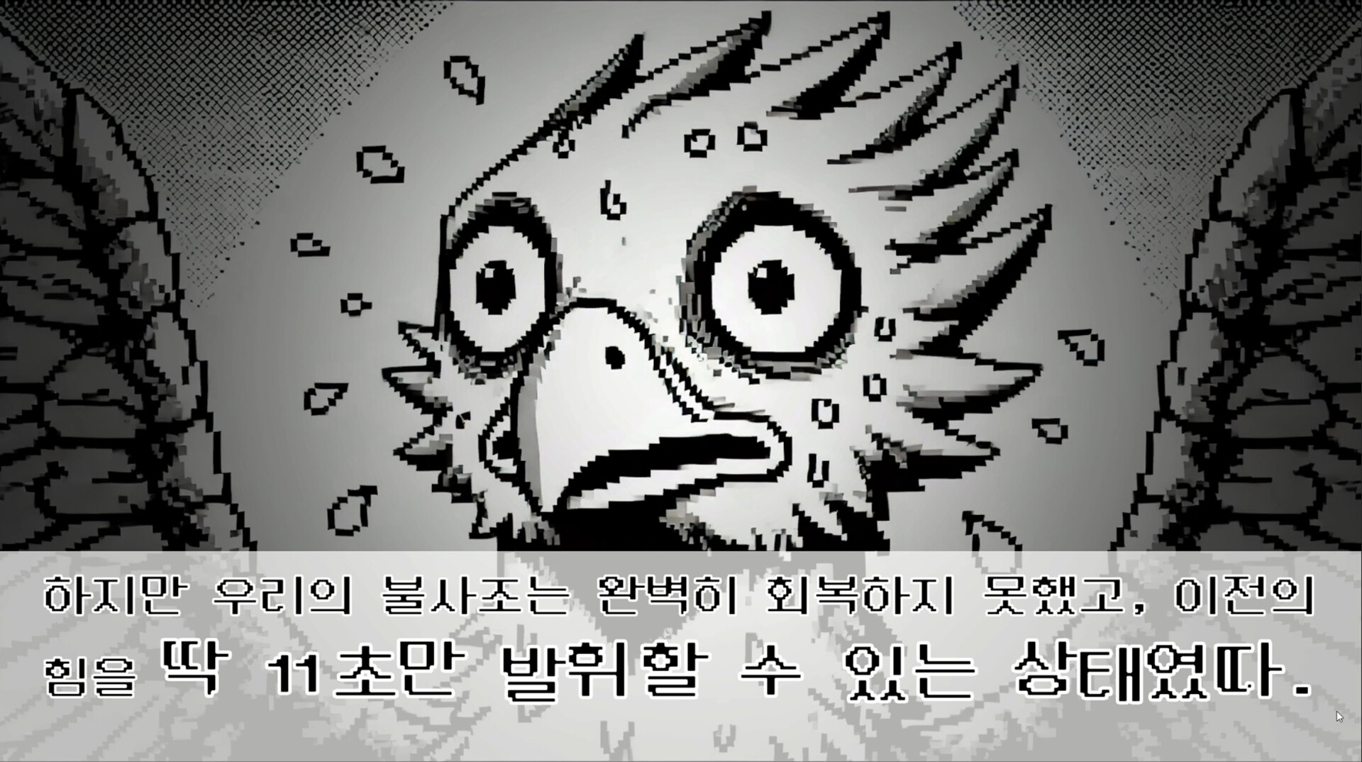 명예로운 환상수인 당신은 그들의 도전을 받아들여야 하지만, 아직 상처 치료가 덜 되어 전성기 시절의 힘을 딱 11초만 낼 수 있다.