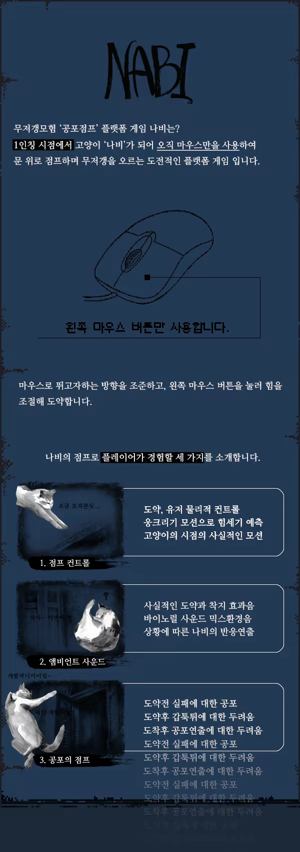 이 게임은 점프게임으로 상당한 컨트롤과 인내를 필요로 합니다.
