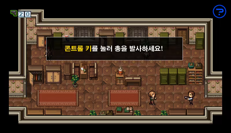 총기를 습득한 후부터 적들에게 공격을 할 수 있으며 게임 플레이 중 총 3종류의 총기를 습득 할 수 있습니다.