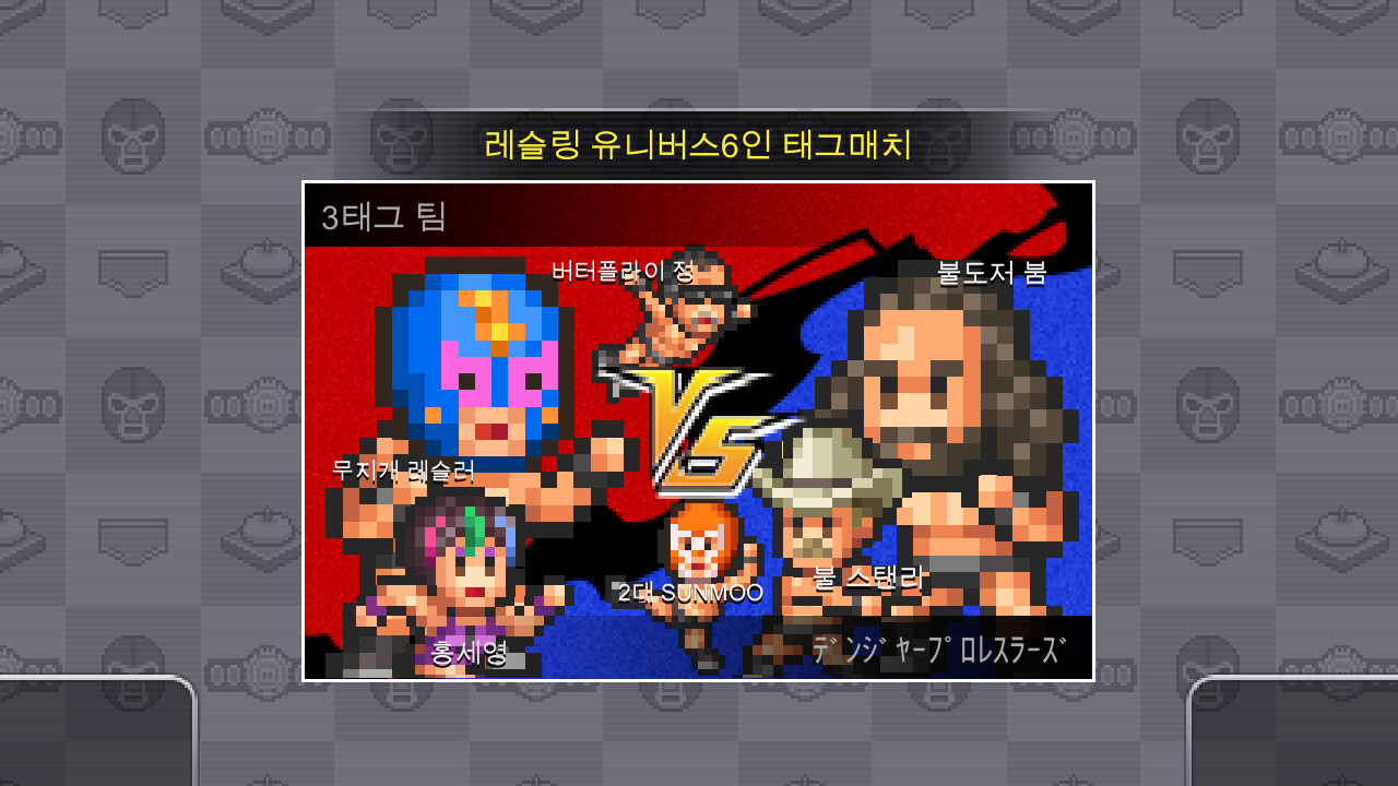 태그 매치, 6인 태그 매치에 도전할 수도 있습니다.