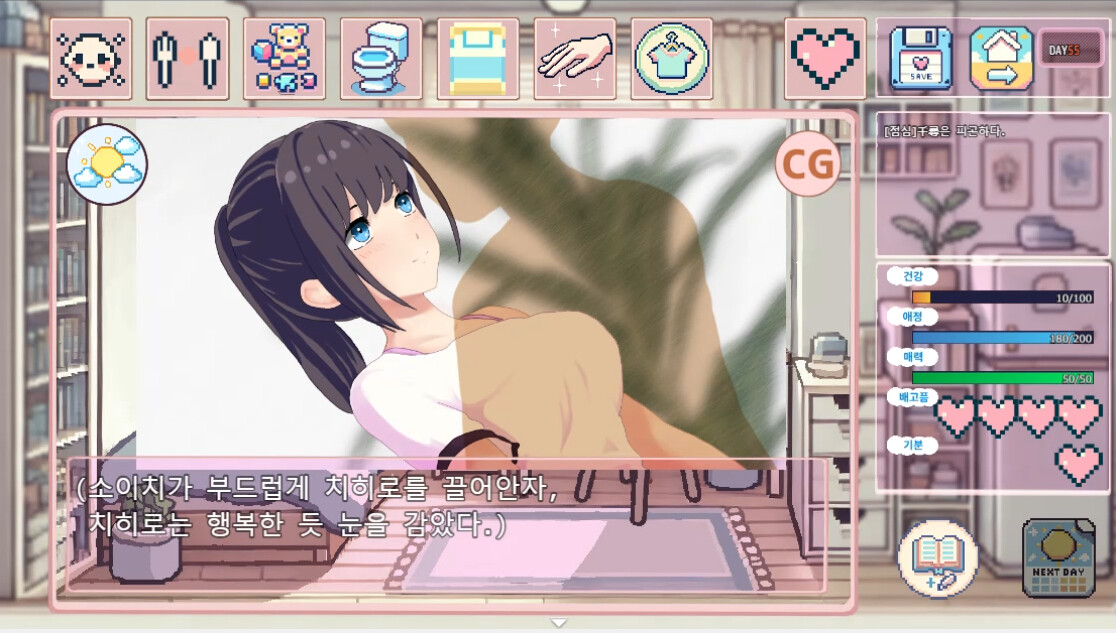 명령 선택과 호감도에 따라 치히로의 성격과 행동이 변화합니다.