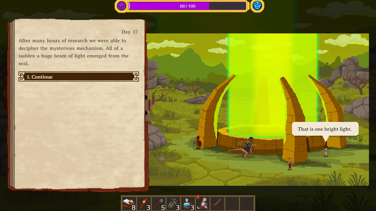 - 당신의 탐험대를 살리고 높은 정신력을 유지할 수 있도록 물자를 관리하세요. 당신에게 필요한 물자들의 수량과 수많은 보물들을 고향으로 가져가고 싶은 욕망 사이의 균형을 조절해 보세요.