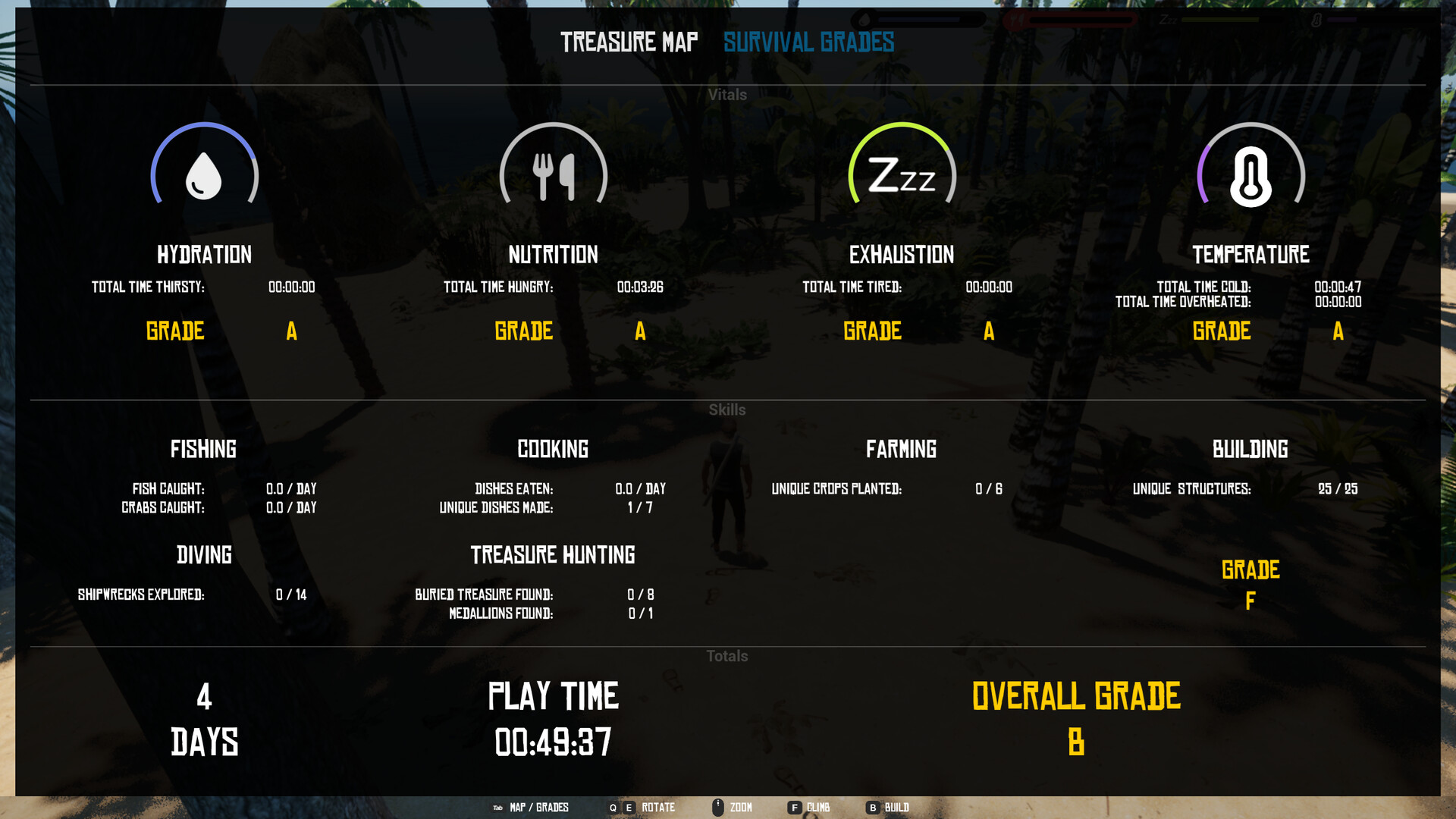 Sunken shipwrecks, buried chests, and hidden chambers are scattered throughout the world waiting to be discovered. Investigate them all to receive a perfect treasure hunting grade.