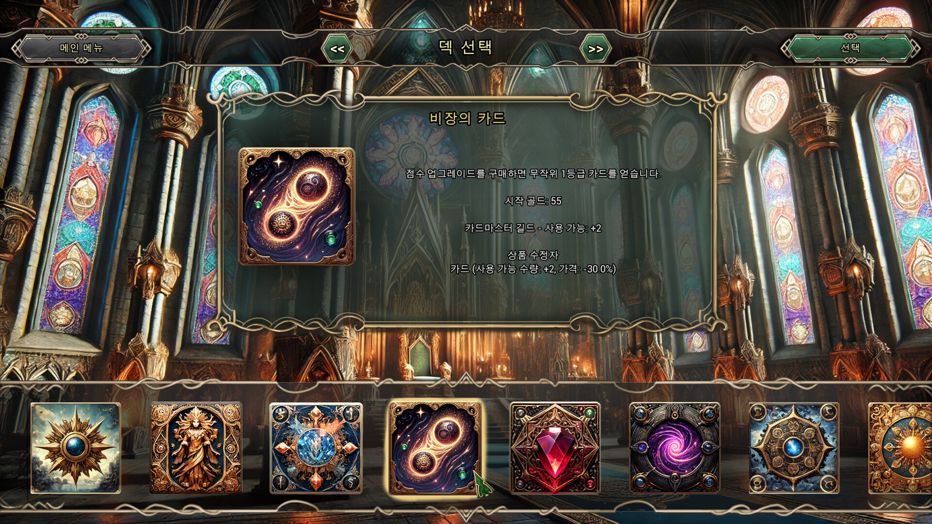 업적 시스템 - 게임에서 업적을 달성할 때마다 새로운 콘텐츠가 잠금 해제됩니다. 새로운 덱, 카드 재료, 슬롯 업그레이드, 그리고 특별한 능력까지!