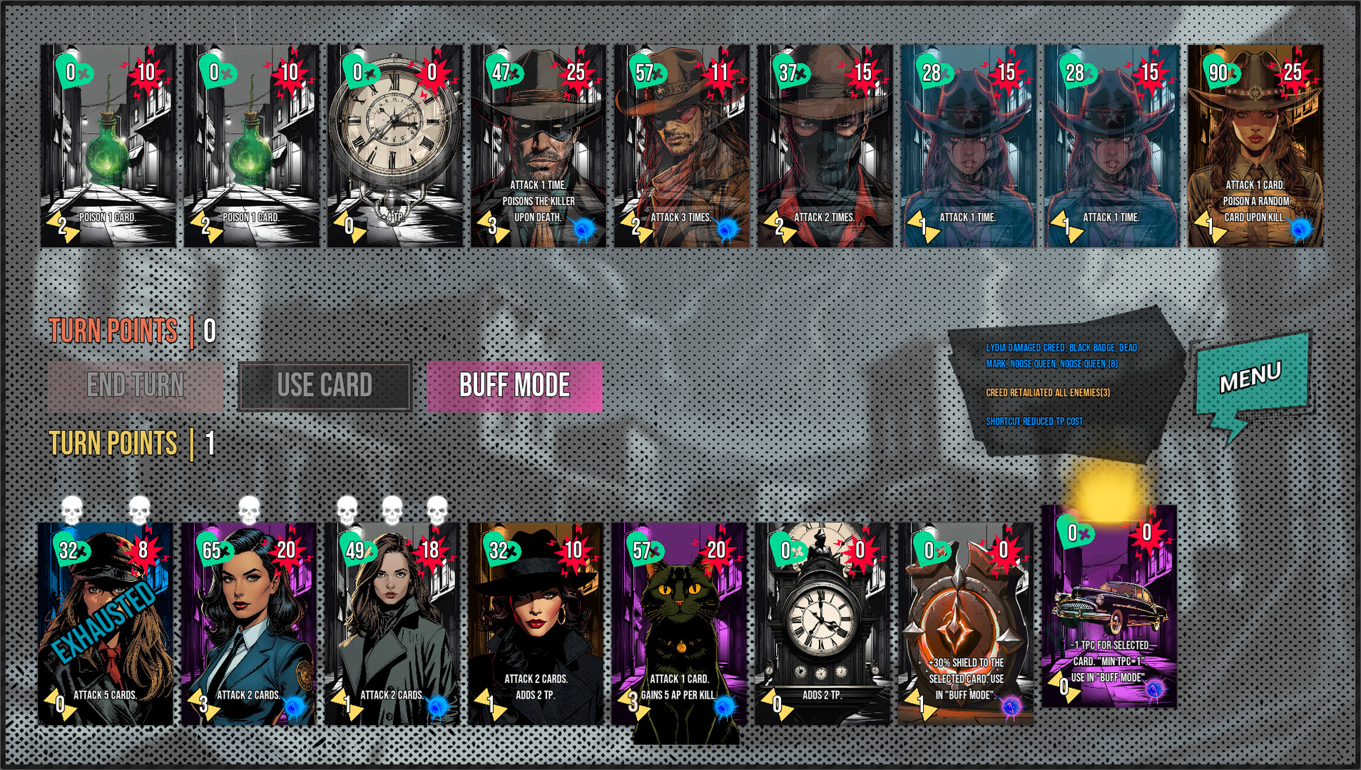 노와르 시티의 거친 거리에서 펼쳐지는 전술 카드 쇼다운.