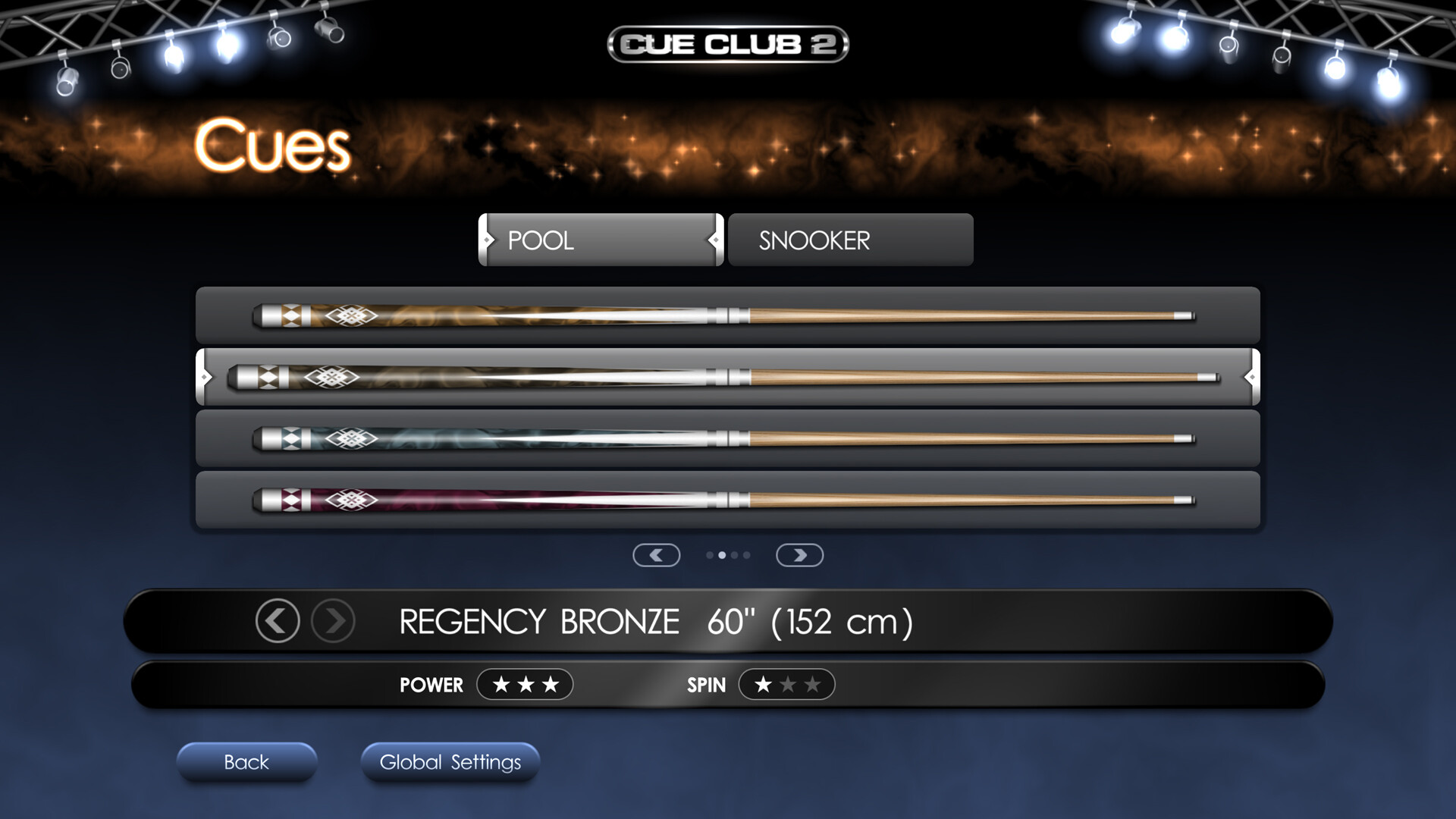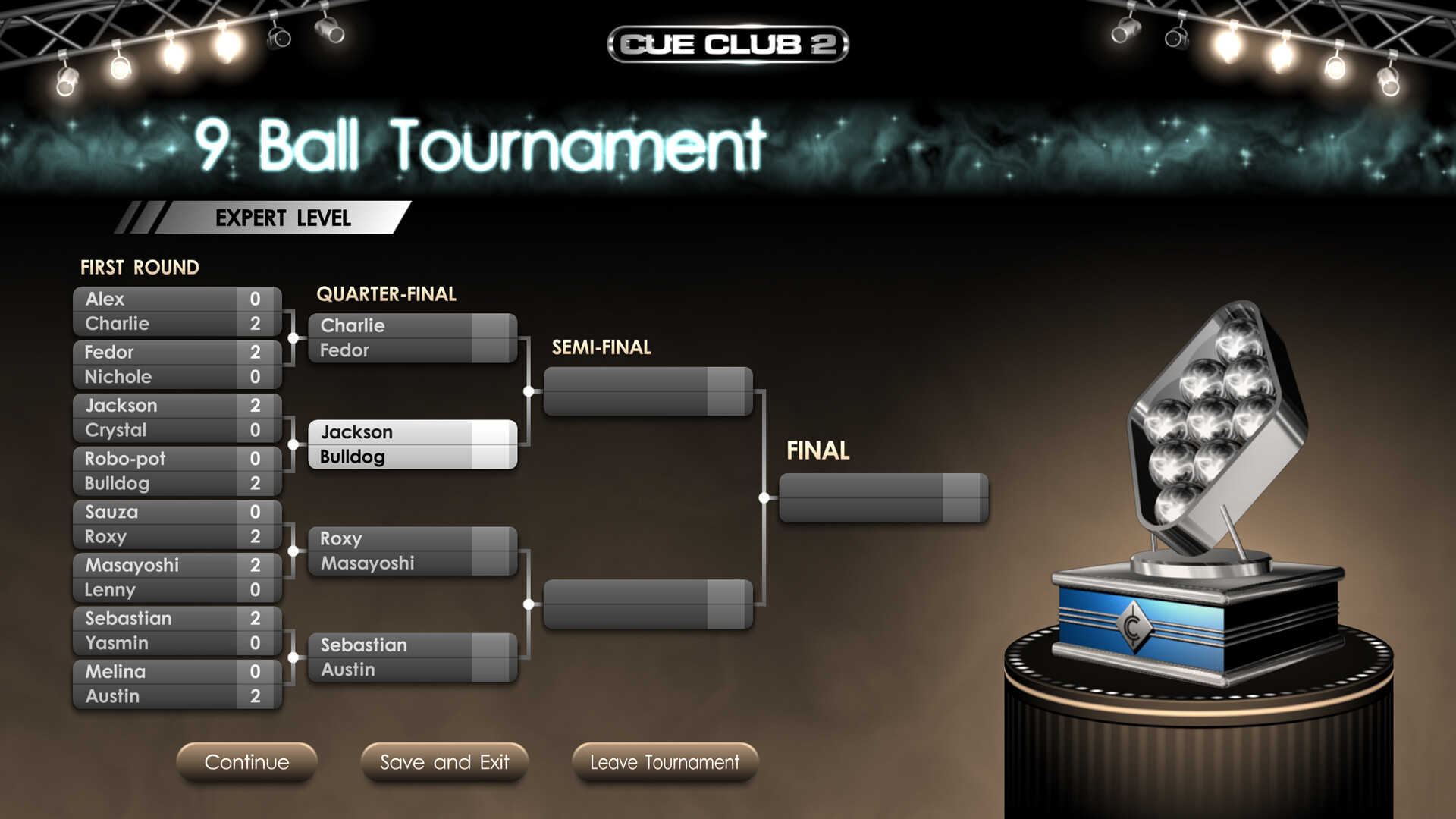 Tournament, Bar Challenge, 2, 3 and 4 Player, Multiplayer, Spectator and Practice modes