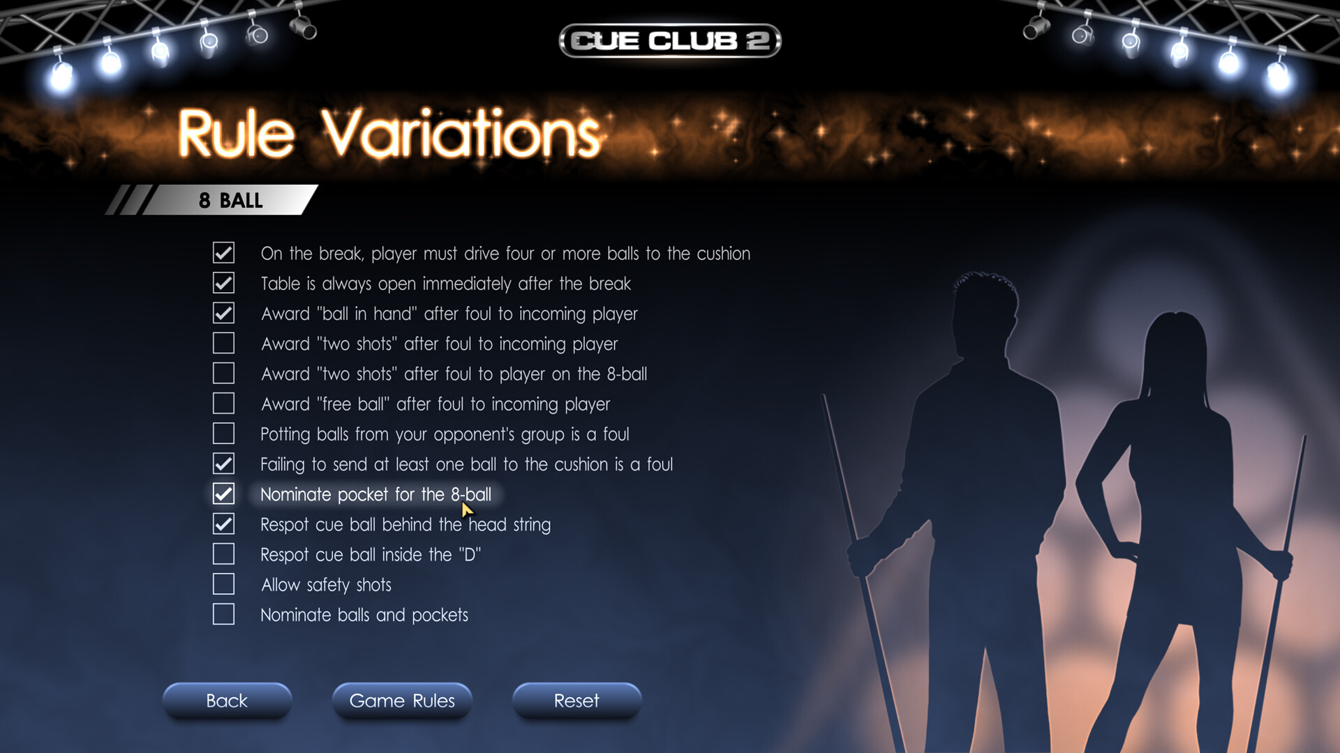 Play 8 ball, 9 ball, 10 ball, 6 ball, 7 ball, 14.1 Straight Pool, Snooker, Speed Pool and Killer