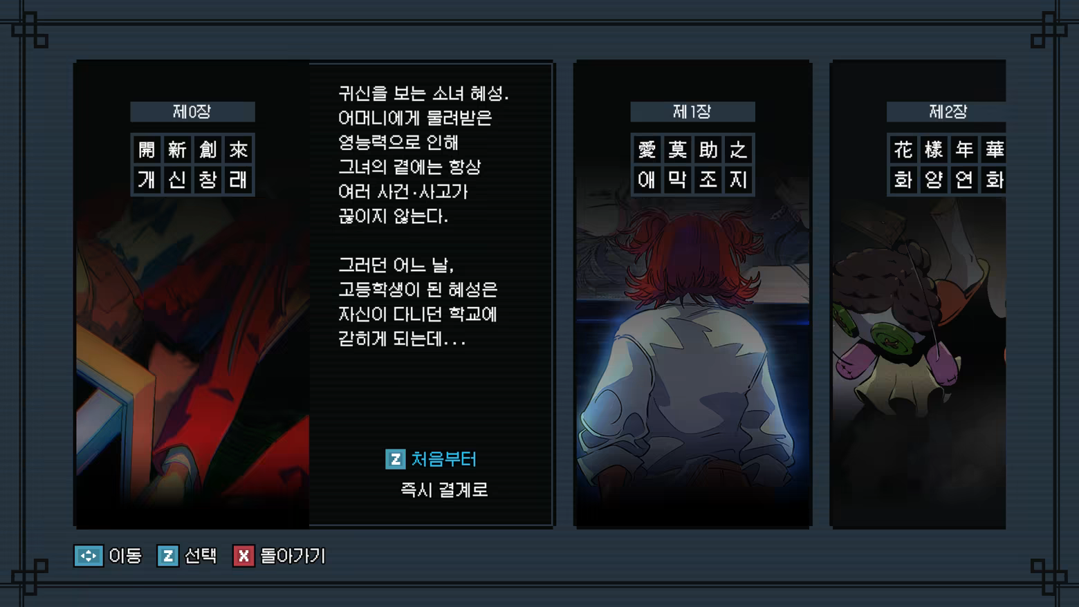 플레이어는 무당이었던 어머니의 영향으로 보지 말아야 할 것들을 보게 된 소녀, 혜성이 되어 이야기를 진행합니다.