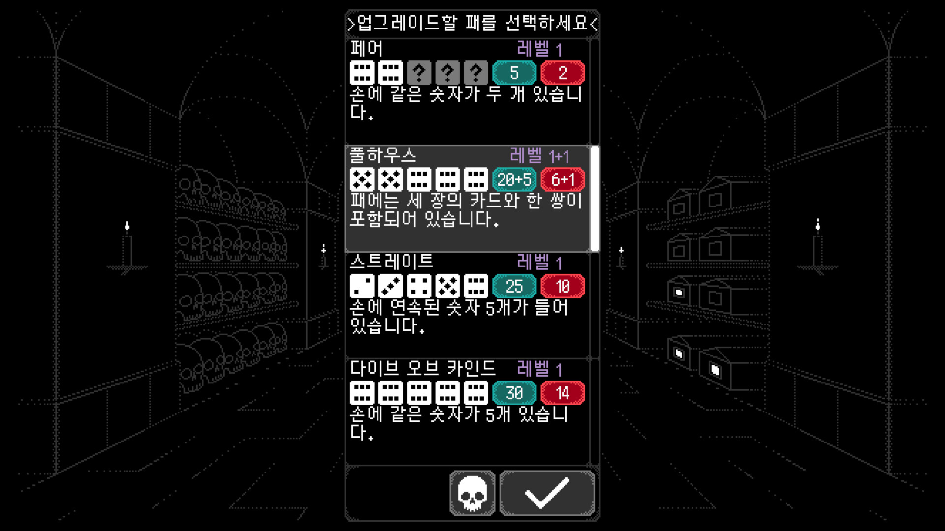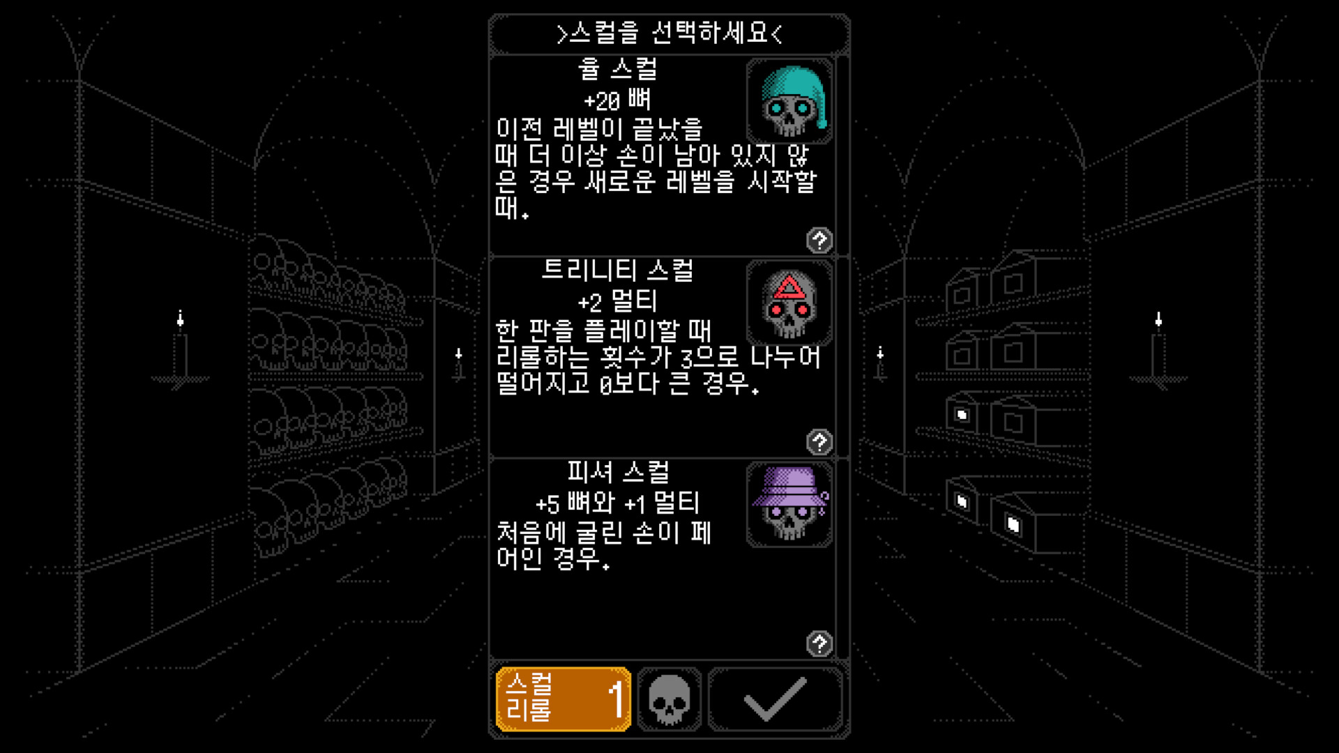 매 패마다 최대한 많은 스컬을 활성화하고, 리롤을 통해 최대한의 이점을 얻으세요. 선택한 패를 업그레이드하여 가치를 높이고, 스컬 덱을 보완하여 점점 더 어려워지는 도전에 맞서 싸우세요.