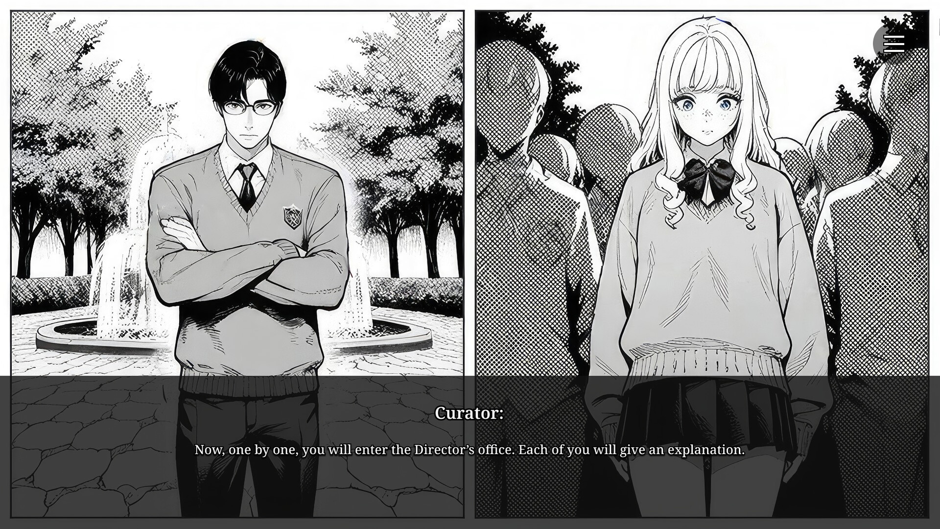 낯선 시선과 닫힌 복도들 사이에서, 당신은 두 명의 학생을 만난다.