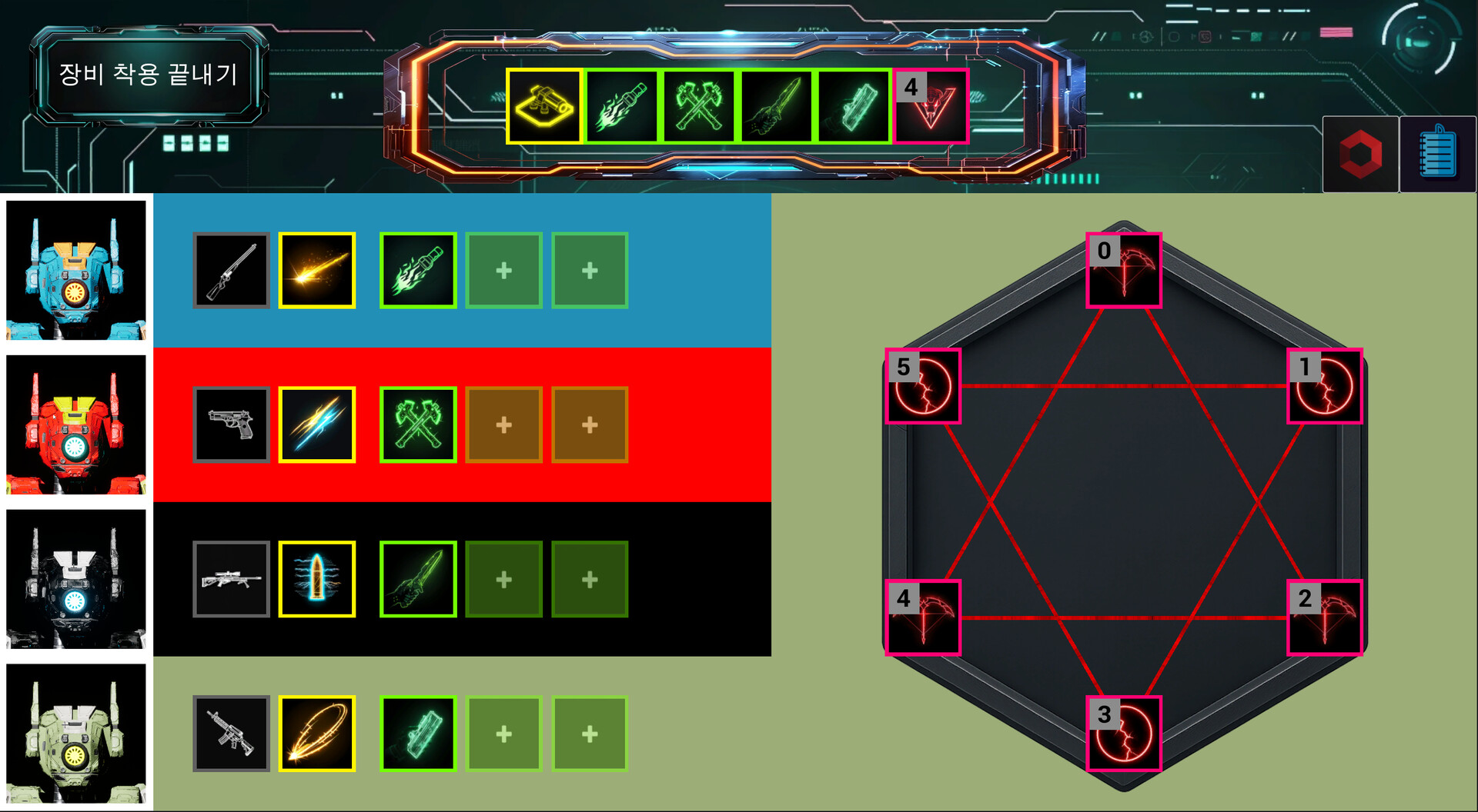 전투 중 획득한 장비를 통해 로봇의 능력을 강화하세요. 액티브, 패시브, 무기를 조합해 전투 스타일을 정의하고, 매 회차마다 새로운 빌드를 만들어나가는 재미를 느껴보세요.