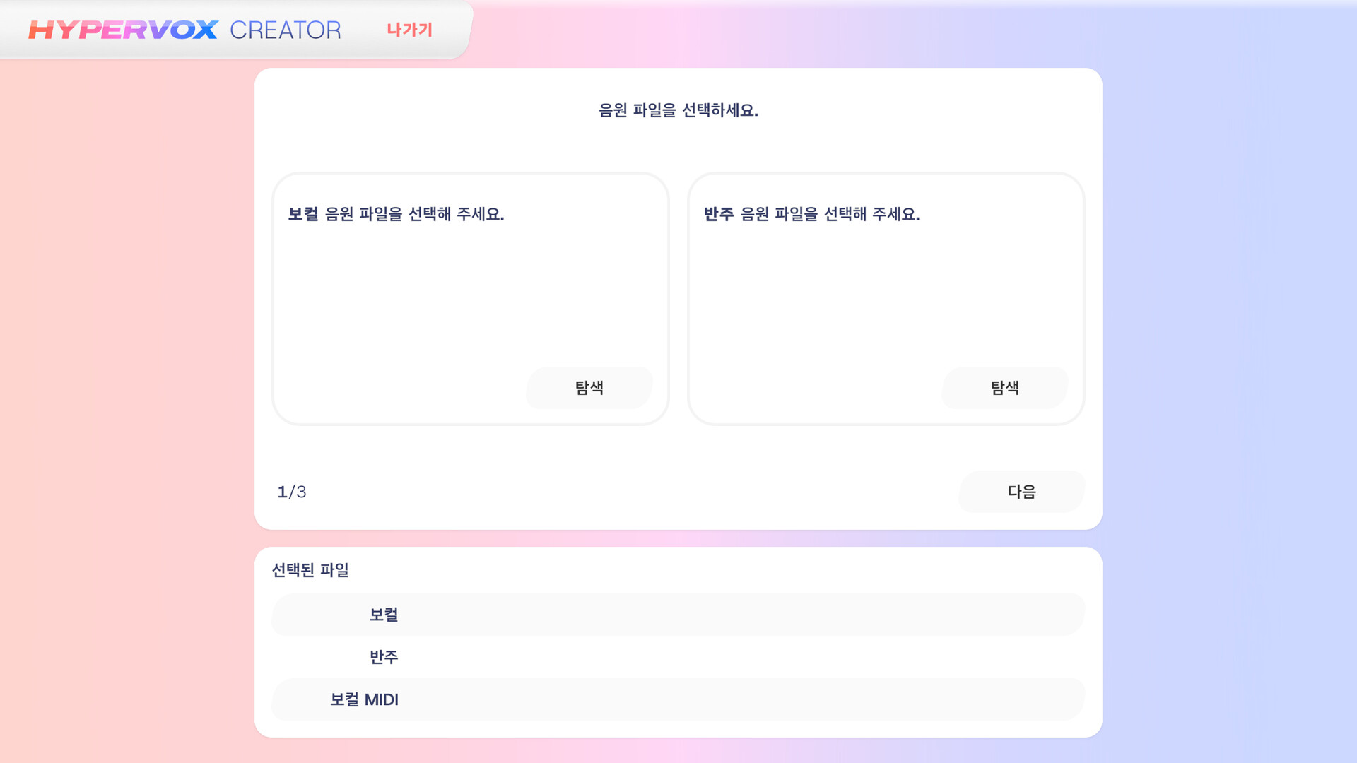 1. 먼저, 보컬과 반주 음원 파일을 선택합니다. 권장 오디오 포맷은 44.1kHz/16bit WAV입니다. 두 음원의 샘플링 주파수가 일치해야 정상적인 플레이가 가능합니다.